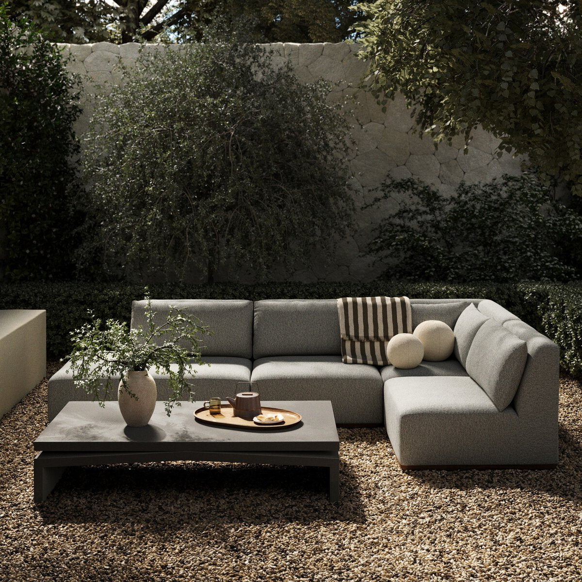 Overall Dimensions 138.50"w x 75.00"d x 30.00"hItem Number 248163-001Colors Concha Fog, Stained Toasted Brown-FSCMaterials 100% Olefin, Solid FSC®-Certified TeakWeight 236.34 lbVolume 116.61 cu ftBack Cushion Attachment LooseBack Cushion Detail Knife EdgeBack Cushion Detail Removable CasingChair Arm Option ArmlessCleaning Code