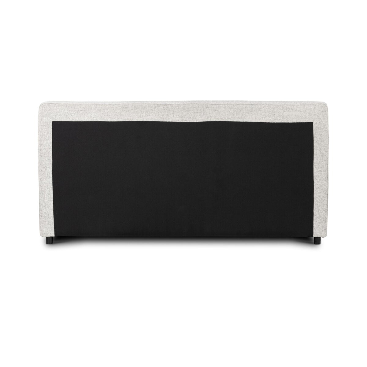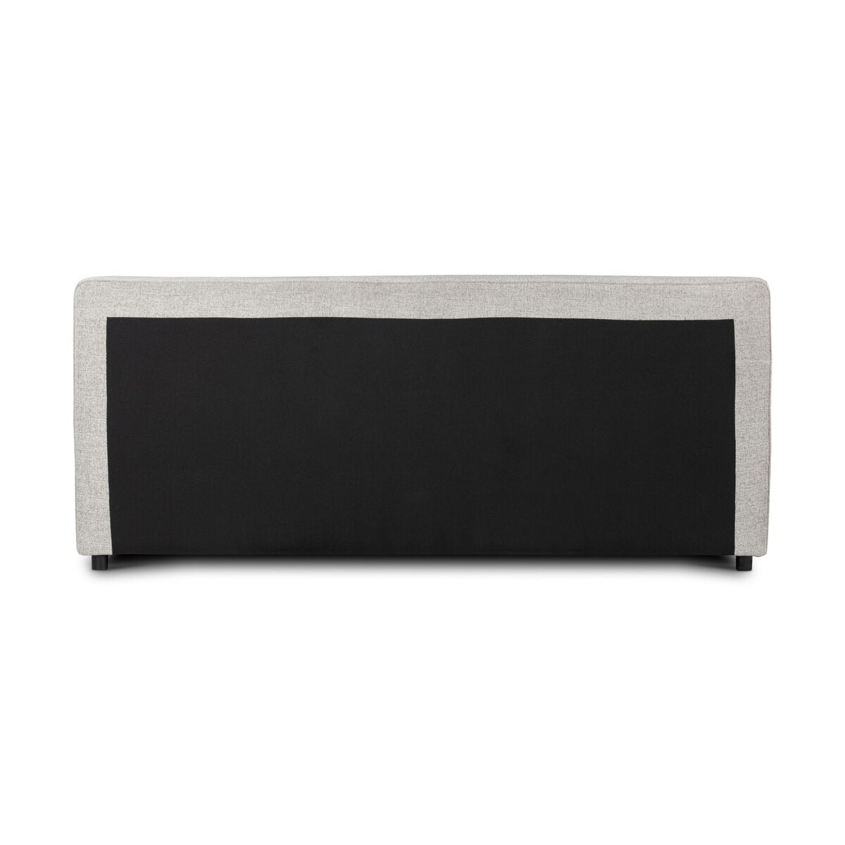 Overall Dimensions 82.75"w x 94.00"d x 35.25"hItem Number 106185-045Colors Plushtone Linen, BlackMaterials 100% Polyester, Solid ParawoodFabric PerformanceWeight 169.97 lbVolume 29.06 cu ftClearance from Footboard 1.89"Clearance from Headboard 1.89"Clearance from Side Rails 1.89"Distance between Slats 2.76"Floor to Top of Slat Height 8.23"Footboard Height 10.83"Footboard Thickness 2.87"Footboard Width 82.76"Headboard Height 35.24"Headboard Thickness 12.01"Headboard Width 82.76"Interior Dimension for Mattress Depth 81.50"Interior Dimension for Mattress Height 2.60"Interior Dimension for Mattress Width 77.01"Side Rails Height 8.86"Side Rails Length 81.50"Side Rails Thickness 2.87"Slat Width 2.76"Adjustable Bed Frame Compatible YesBed Backing Fully FinishedBed Material UpholsteredBox Spring Required Not RequiredCleaning Code
