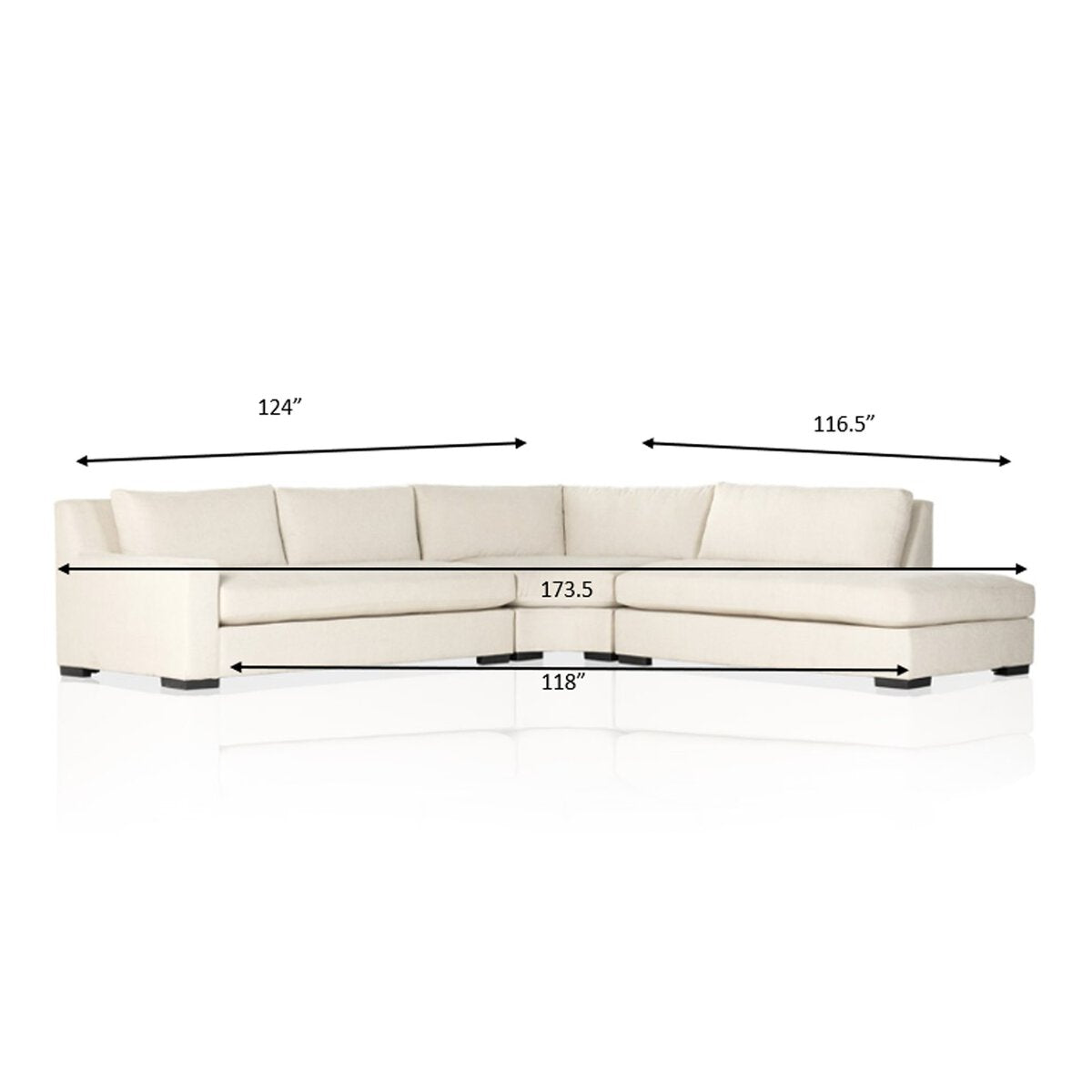 Overall Dimensions 149.00"w x 141.50"d x 33.00"hItem Number 237726-001Colors Alcott Fawn, EspressoMaterials 52% Viscose (Rayon), 25% Polyester, 15% Flax/Linen, 8% Cotton, Solid BanakFabric PerformanceWeight 233.69 lbVolume 188.86 cu ftBack Cushion Attachment LooseBack Cushion Detail BoxedBack Cushion Detail Removable CasingChair Arm Option With ArmCleaning Code