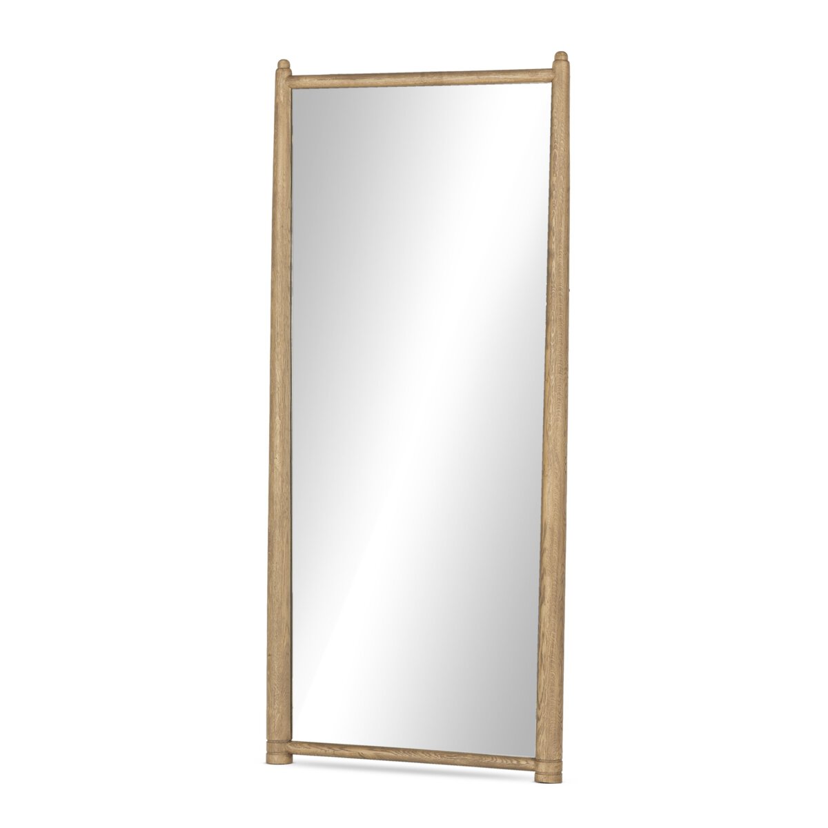 Overall Dimensions 36.50"w x 3.00"d x 82.00"hItem Number 247305-001Colors Light Wash OakMaterials Solid Oak, MirrorWeight 98.88 lbVolume 22.78 cu ftReflective Area, Height 76.25"Reflective Area, Width 30.25"Bathroom Safe NoHanging Direction  cannot be hungHanging Direction Floor onlyShape Type RectangleSuite Aldwin