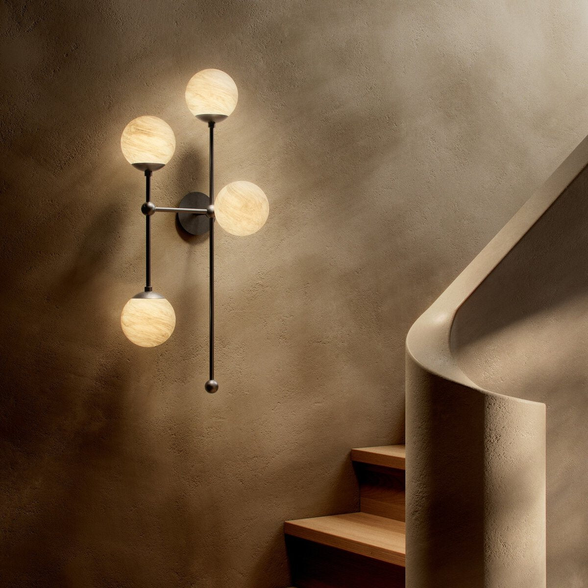 Overall Dimensions 13.75"w x 13.00"d x 36.25"hItem Number 245053-001Colors Burnished Brass, Opal Matte GlassMaterials Brass, GlassWeight 8.36 lbVolume 6.11 cu ftCord Length 36.30"Mounting Plate Depth 0.47"Mounting Plate Diameter 4.92"Sconce Arm Depth 2.52"Sconce Arm Height 0.51"Sconce Arm Width 0.51"Shade Bottom Diameter 5.91"Shade Height 1 5.91"Shade Top Diameter 1 5.91"Bathroom Safe YesBulb Type LEDBulb(s) Included YesCord Type OtherDimmer Switch Compatible YesEnvironmental Rating Damp RatedMax Wattage 9.00Plug Type HardwiredShade Shape RoundSocket Qty 4.00Socket Type E12: SOCKETSocket Type Type GSuite ArmstrongSwitch Type HARDWIRED (NO SWITCH)Visible Bulb Yes