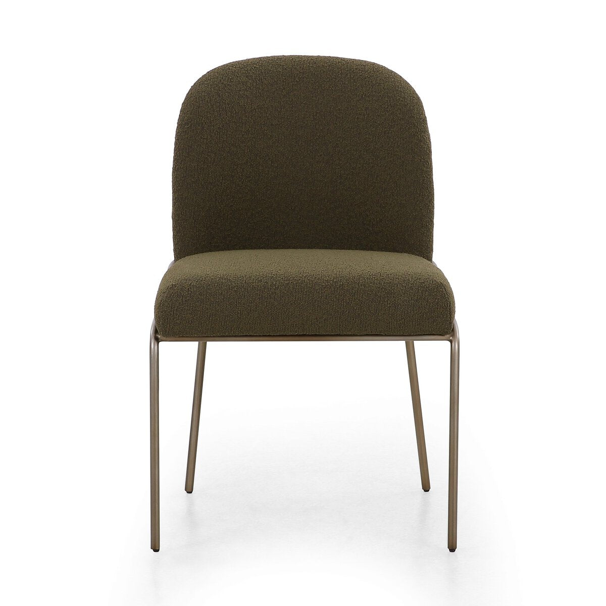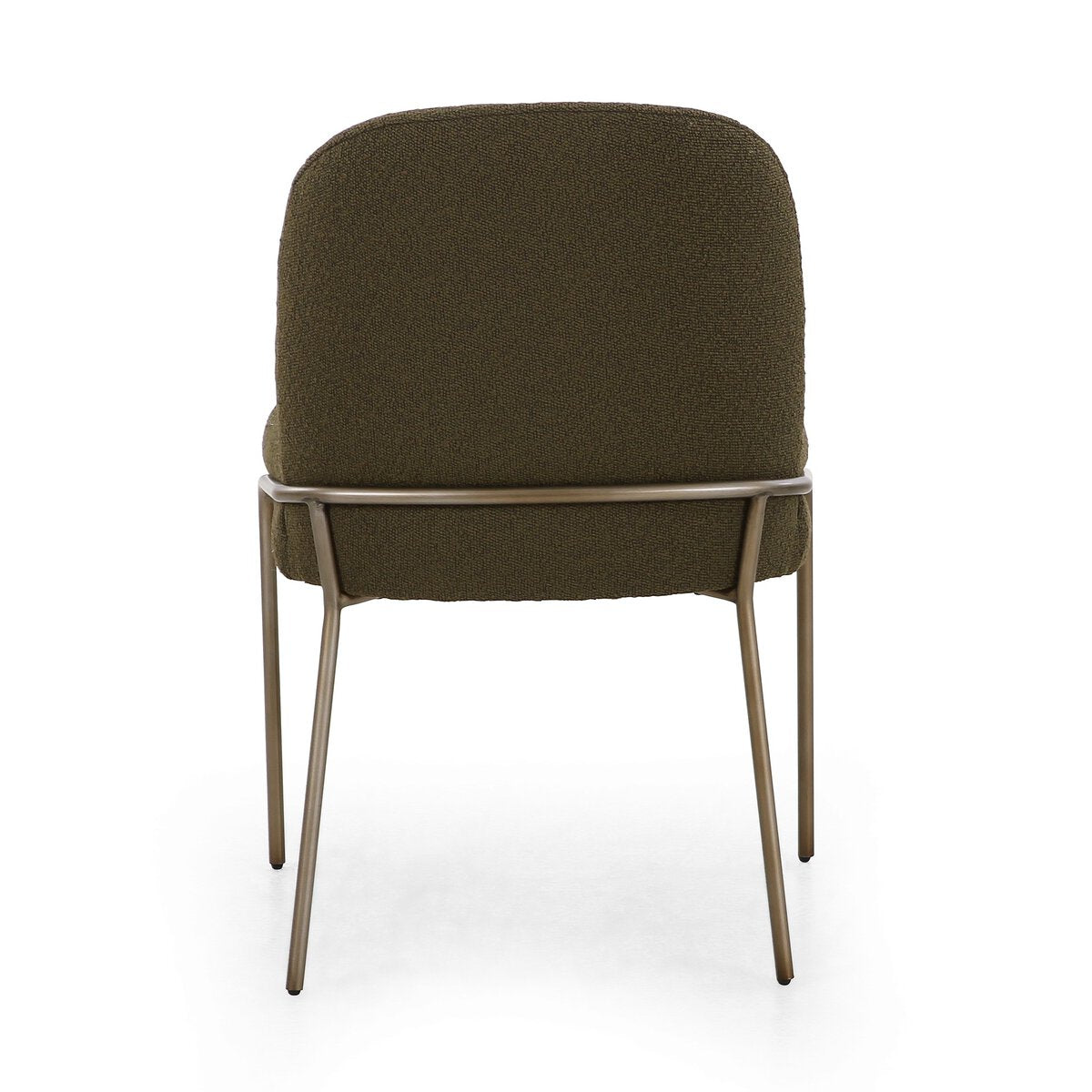 An Art Deco dream. A sculpted, scalloped-back dining chair pairs with slim, iron tube framing finished in a brushed slate, for a smooth, fashion-forward feel. Upholstered in snow-white Crypton® performance fabric. Crypton® performance fabric is specially engineered for protection against stains, moisture and odor.