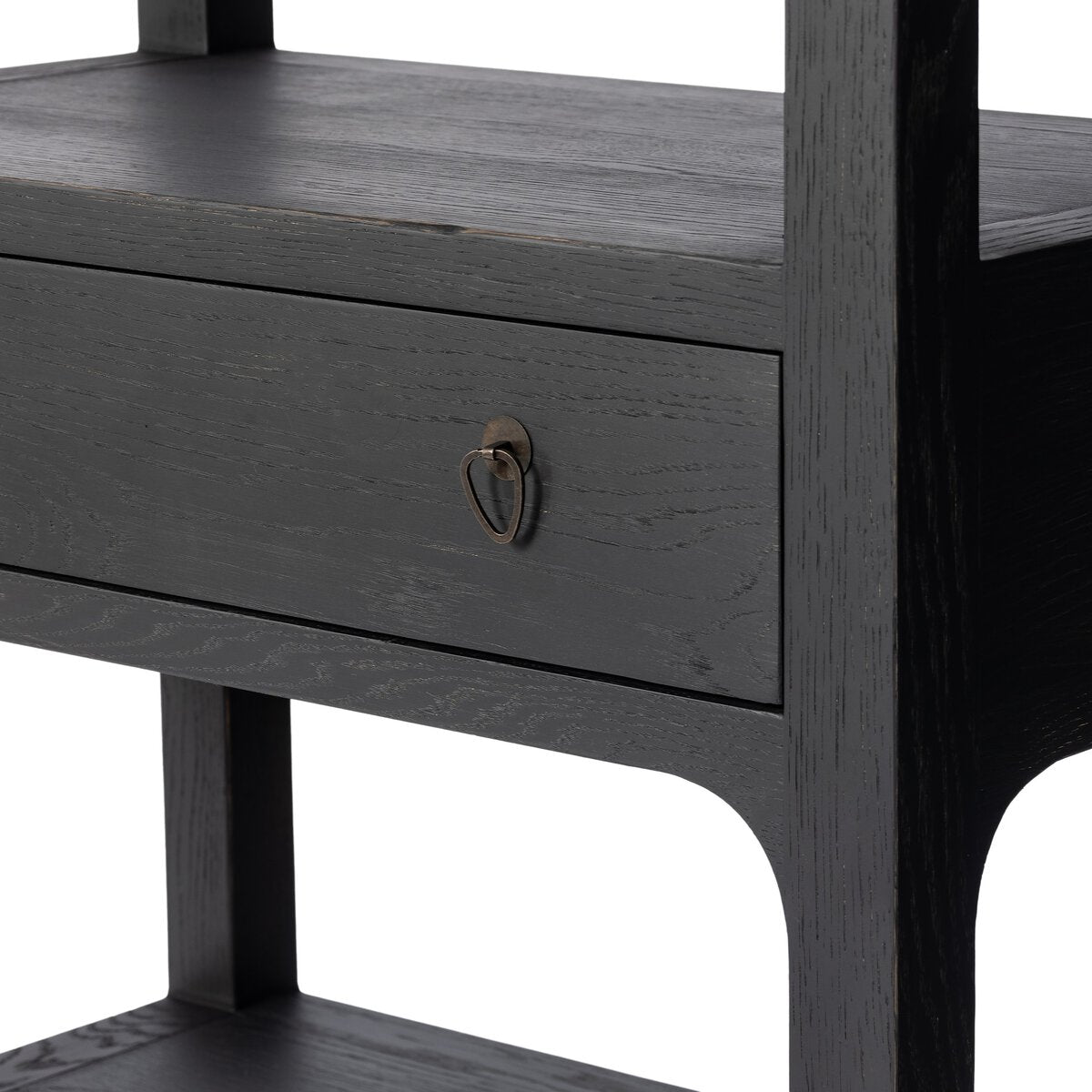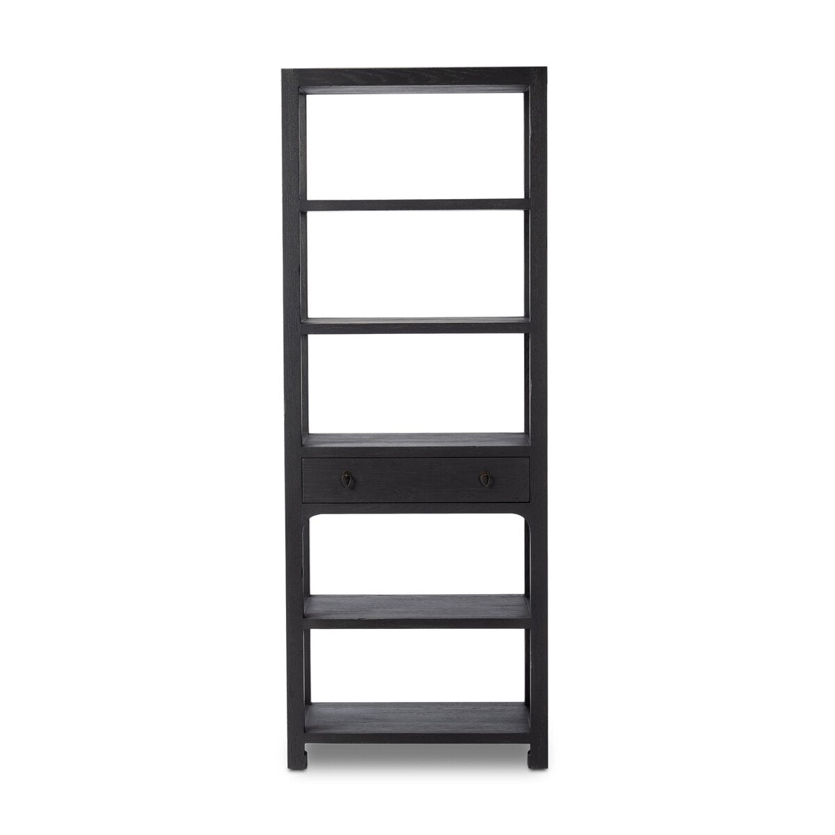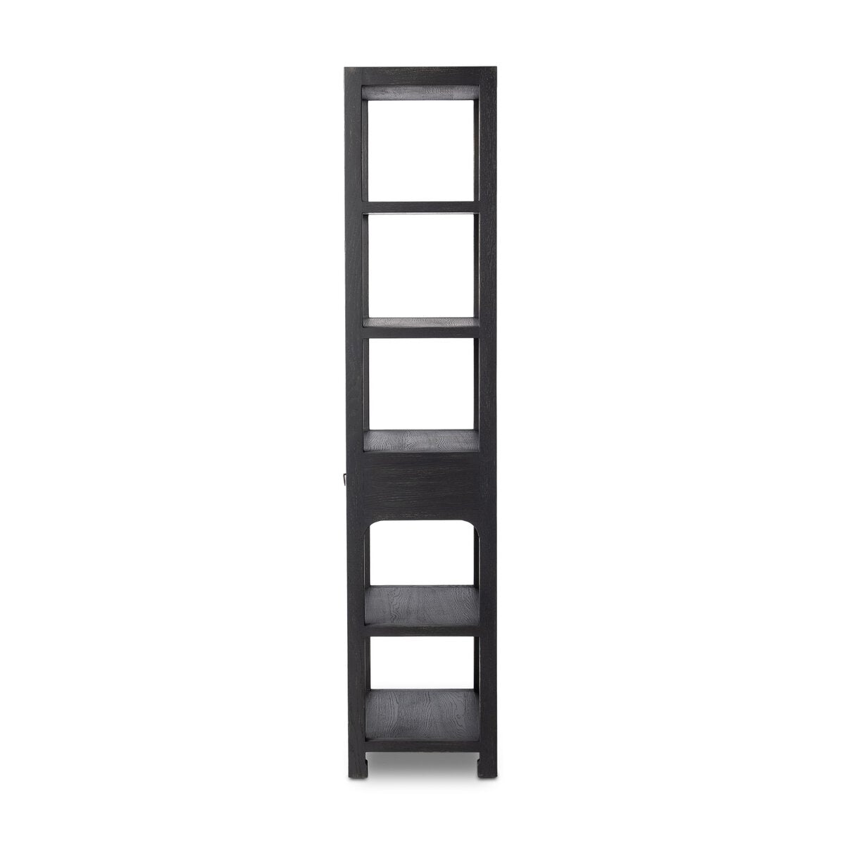 Overall Dimensions 30.00"w x 17.00"d x 80.00"hItem Number 248832-005Colors Aged Black Oak, Aged Black Oak VeneerMaterials Solid Oak, Thick Oak VeneerWeight 126.98 lbVolume 33.90 cu ftClearance from Floor 1 2.91"Drawer Depth 1 13.39"Drawer Height 1 4.25"Drawer Width 1 24.75"Fixed Shelf Depth 1 16.93"Fixed Shelf Height 1 1.26"Fixed Shelf Width 1 29.92"Interior Section Depth 1 12.99"Interior Section Depth 2 12.99"Interior Section Depth 3 12.99"Interior Section Depth 4 12.99"Interior Section Depth 5 12.99"Interior Section Height 1 12.76"Interior Section Height 2 12.76"Interior Section Height 3 12.76"Interior Section Height 4 12.01"Interior Section Height 5 12.01"Interior Section Width 1 25.98"Interior Section Width 2 25.98"Interior Section Width 3 25.98"Interior Section Width 4 25.98"Interior Section Width 5 25.98"Anti-Tip Kit Included? YesCan Be Floated YesDoor Type No DoorsDrawer Glide Color BlackDrawer Glide Type Sidemount WoodDrawer Joinery English DovetailDrawer Quantity 1.00Drawer Stop Anti Tip Rail YesDrawer Stop Material WoodFixed Shelf Qty 4.00Fixed Shelves YesFrame Construction Joinery Mortise and TenonFunctionality DrawersFunctionality ShelvesHas Leveler YesInterior Section Quantity 5.00Protective Feet Leg LevelersRecommended Shelf Capacity (kg) 18.14Recommended Shelf Capacity (lbs) 40.00Shape Type SingleSuite Avedon