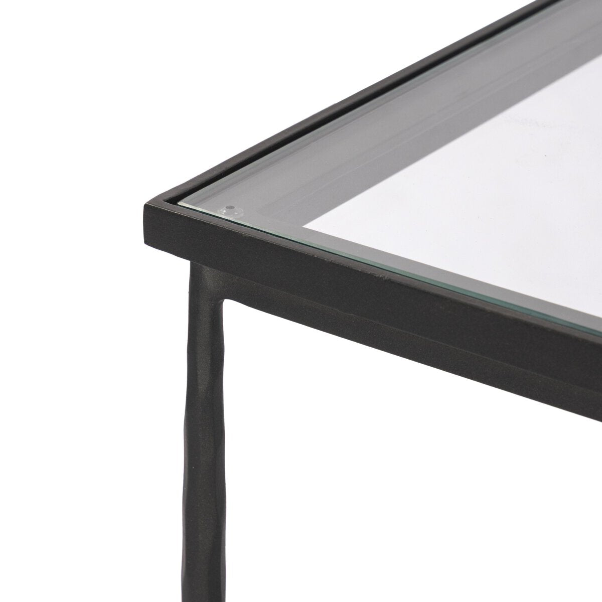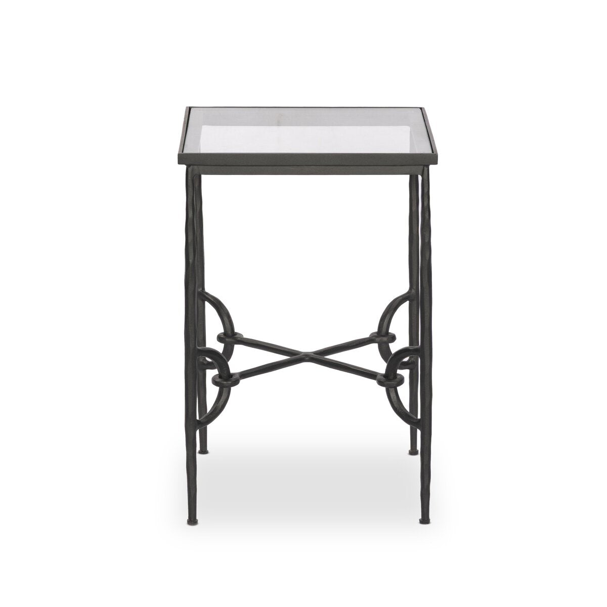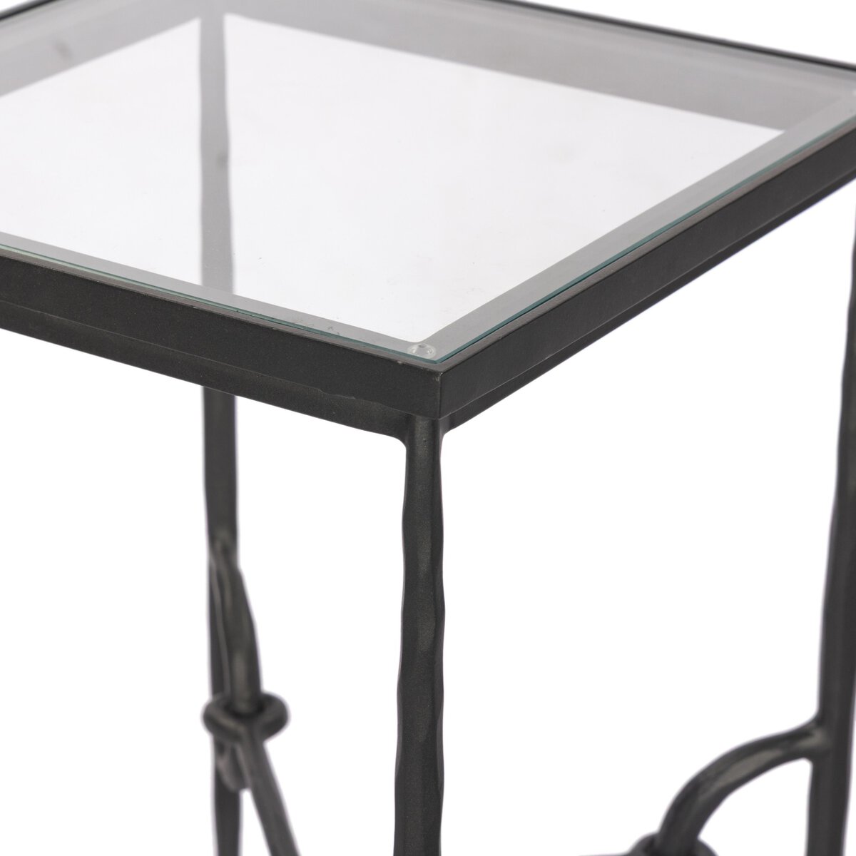 Overall Dimensions 13.00"w x 13.00"d x 20.00"hItem Number 251734-001Colors Tempered Glass, Hammered GunmetalMaterials Tempered Glass, IronWeight 18.08 lbVolume 4.34 cu ftClearance from Floor 1 5.00"Distance between Legs (Front to Back) 1 11.50"Distance between Legs (Side to Side) 1 11.50"Leg/Base Depth 1 13.00"Leg/Base Height 1 20.00"Leg/Base Width 1 13.00"Tabletop Thickness 0.63"Drawer Glide Type NoneDrawer Stop Material NoneHas Leveler YesProtective Feet Leg LevelersShape Type SquareSuite BabylonWeight Capacity 100 lb