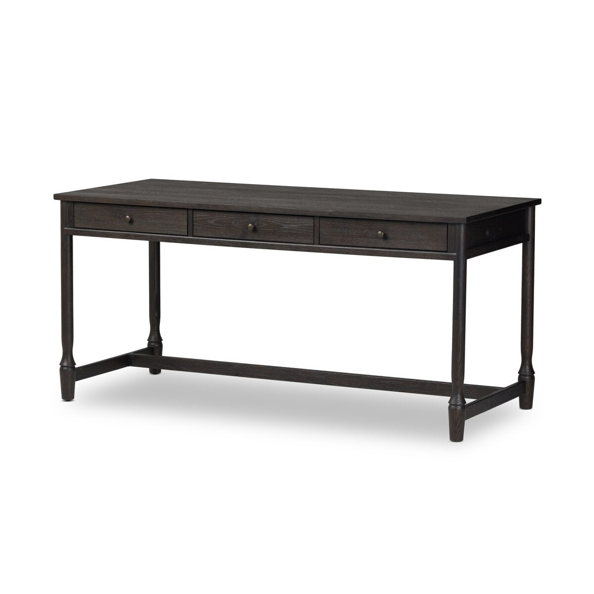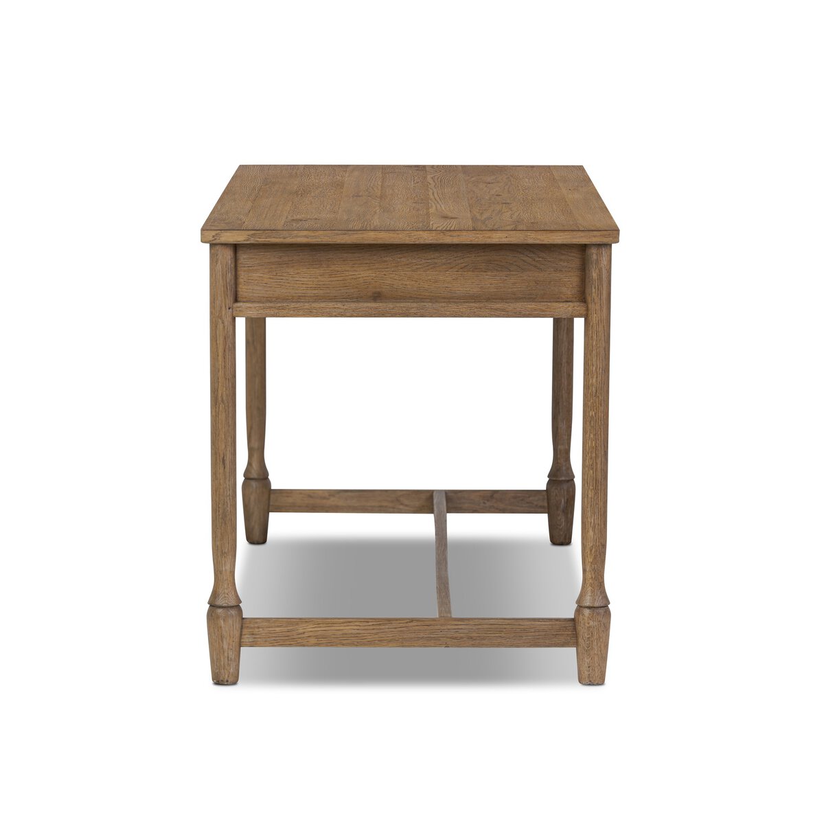 Overall Dimensions 66.00"w x 28.00"d x 31.00"hItem Number 249124-001Colors Weathered Oak VeneerMaterials Thick Oak Veneer, Solid OakWeight 136.69 lbVolume 50.89 cu ftClearance from Floor 1 2.48"Distance between Legs (Front to Back) 1 23.35"Distance between Legs (Side to Side) 1 61.34"Drawer Depth 1 21.10"Drawer Height 1 2.09"Drawer Width 1 17.46"Opening for Seating Height 25.00"Tabletop Thickness 0.98"Can Be Floated YesDoor Type No DoorsDrawer Glide Color BlackDrawer Glide Type Sidemount MetalDrawer Joinery English DovetailDrawer Quantity 3.00Drawer Stop Material NoneFrame Construction Joinery Butt JointFrame Construction Joinery Mortise and TenonFunctionality DrawersHas Leveler YesProtective Feet Leg LevelersShape Type WritingSuite BariWeight Capacity 100 lb