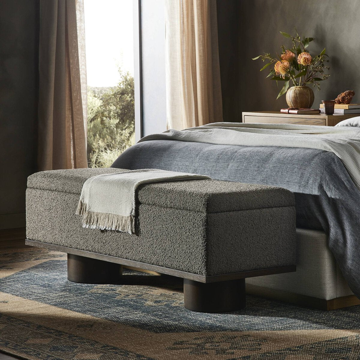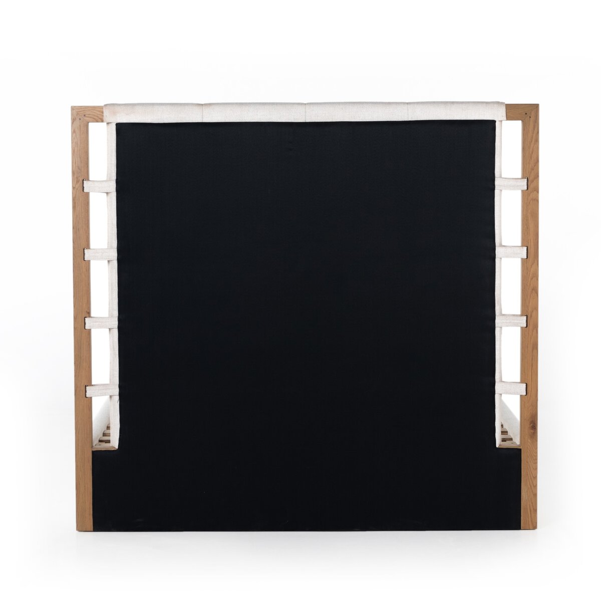 Overall Dimensions 81.50"w x 85.50"d x 60.75"hItem Number 109130-005Colors Dover Crescent, Burnished OakMaterials 71% Viscose (Rayon), 17% Polyester, 12% Flax/Linen, Solid OakFabric PerformanceWeight 266.76 lbVolume 32.81 cu ftDistance between Slats 3.23"Floor to Top of Slat Height 10.24"Footboard Height 12.40"Footboard Thickness 2.36"Footboard Width 81.50"Headboard Height 60.79"Headboard Thickness 3.15"Headboard Width 81.50"Interior Dimension for Mattress Depth 80.51"Interior Dimension for Mattress Height 1.97"Interior Dimension for Mattress Width 77.01"Side Rails Height 12.20"Side Rails Length 80.91"Side Rails Thickness 2.36"Slat Width 2.76"Adjustable Bed Frame Compatible YesBed Backing Dark FabricBed Material UpholsteredBox Spring Required Not RequiredCleaning Code