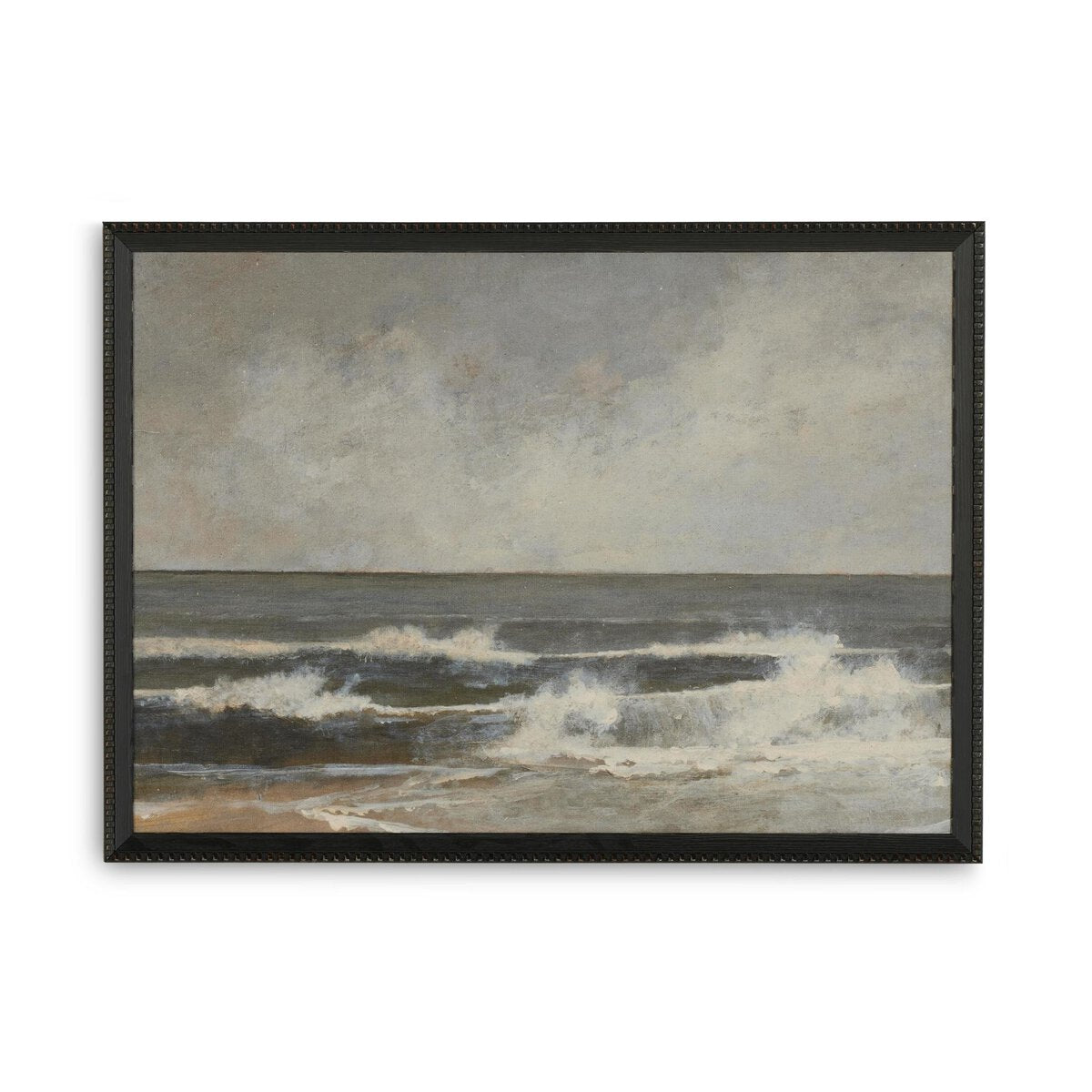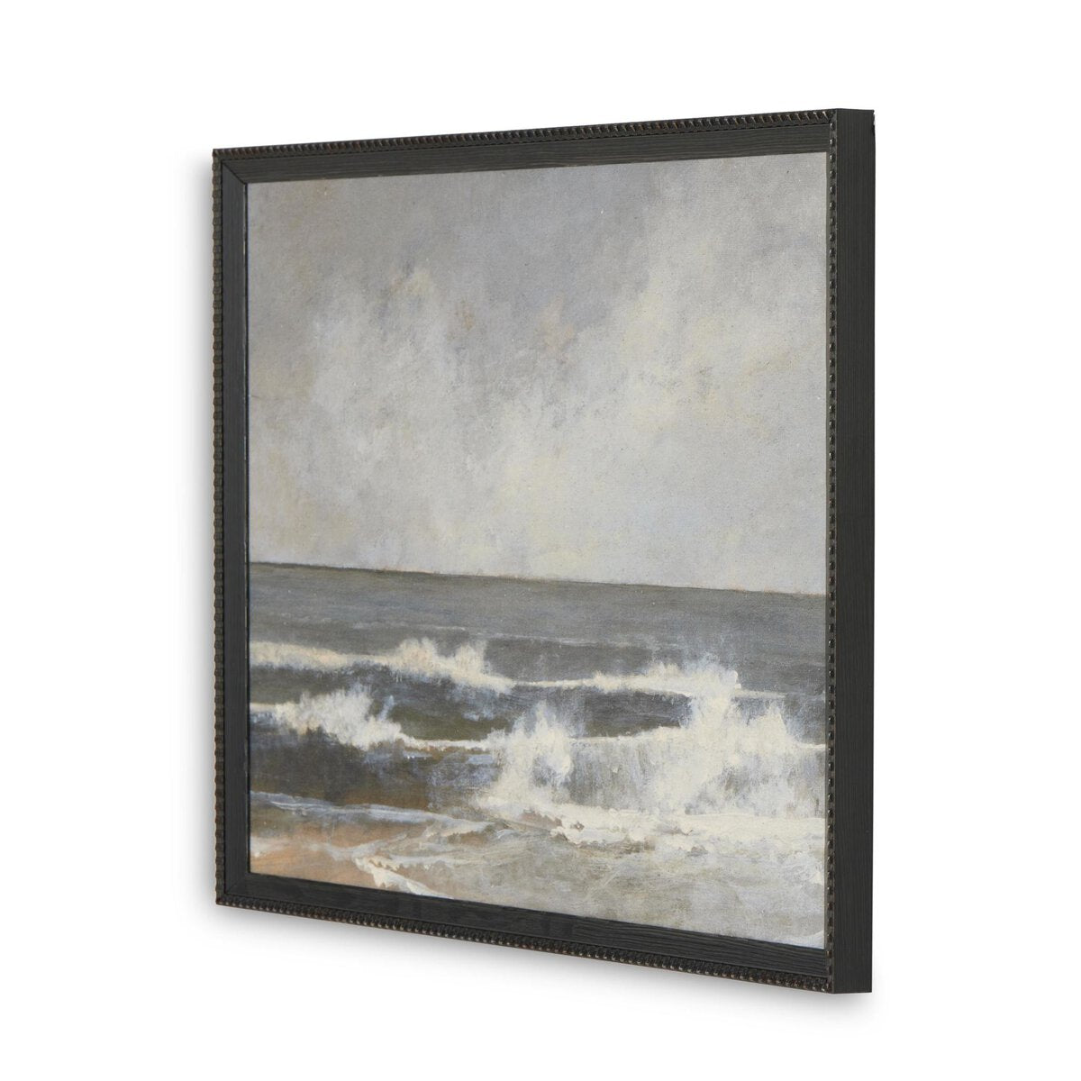 Austin-based landscape artist Aileen Fitzgerald approaches her works with a dry brush technique, using diluted paint for a beautifully blurred result. Finished within a decorative Brimfield black frame of naturally distressed painted pine. Handmade in Austin, Texas.