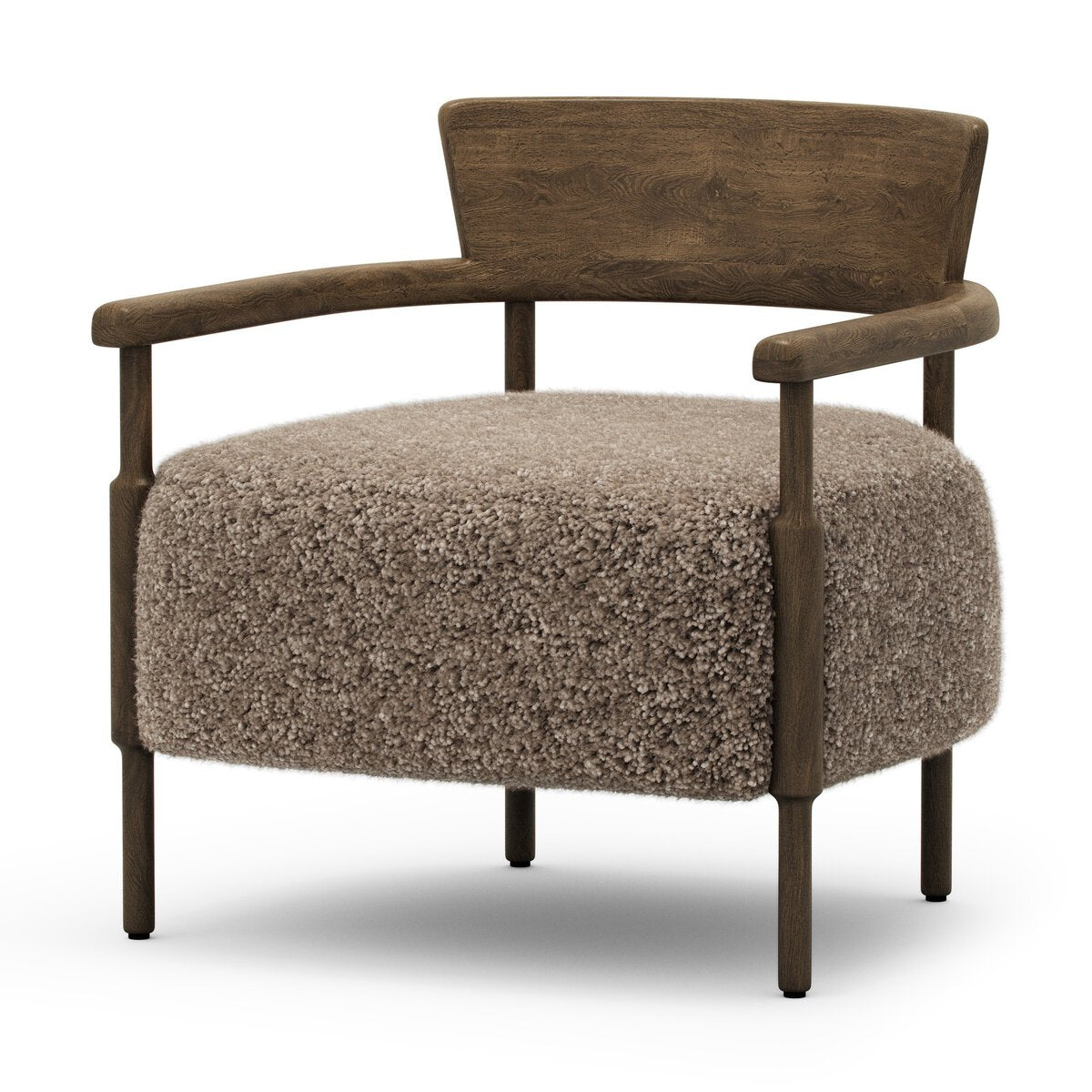 Overall Dimensions 28.25"w x 28.75"d x 29.25"hItem Number 247276-002Colors Beige Shearling, Drifted Oak, Drifted Oak Thick VeneerMaterials Shearling, Solid Oak, Thick Oak VeneerWeight 31.97 lbVolume 18.96 cu ftArm Height from Floor 23.23"Arm Height from Seat 4.92"Arm Length 21.26"Arm Width 1.97"Clearance from Floor 1 7.09"Distance between Legs (Back) 1 16.54"Distance between Legs (Front to Back) 1 20.00"Distance between Legs (Front) 1 25.20"Seat Back Height 10.83"Seat Depth 1 25.98"Seat Height 1 18.31"Seat Width (Back) 24.41"Seat Width (Front) 20.47"Chair Arm Option With ArmCleaning Code
