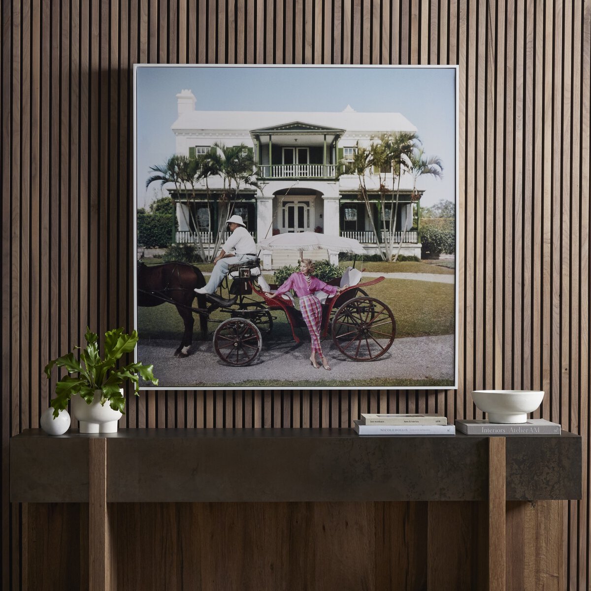 Overall Dimensions 24.00"w x 2.00"d x 24.00"hItem Number 236281-002Colors White Maple Floater, Gloss White MetalMaterials American Maple, Gloss White ChromaluxeWeight 15.00 lbVolume 1.94 cu ftArtist Slim AaronsMain Color MixedOrientation SquarePresentation Style Framed MetalSize SmallSubject Portraits & FiguresSuite Bermudan Hostess
