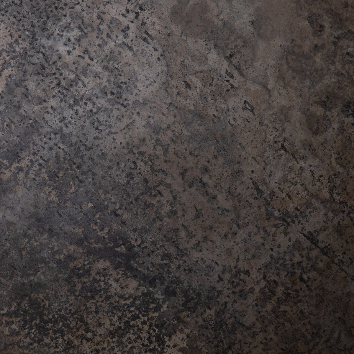 An organic-spirited statement piece. A round tabletop of distressed iron rests within a sculptural cradle base of rustic, character-rich oak with beautiful highs and lows.