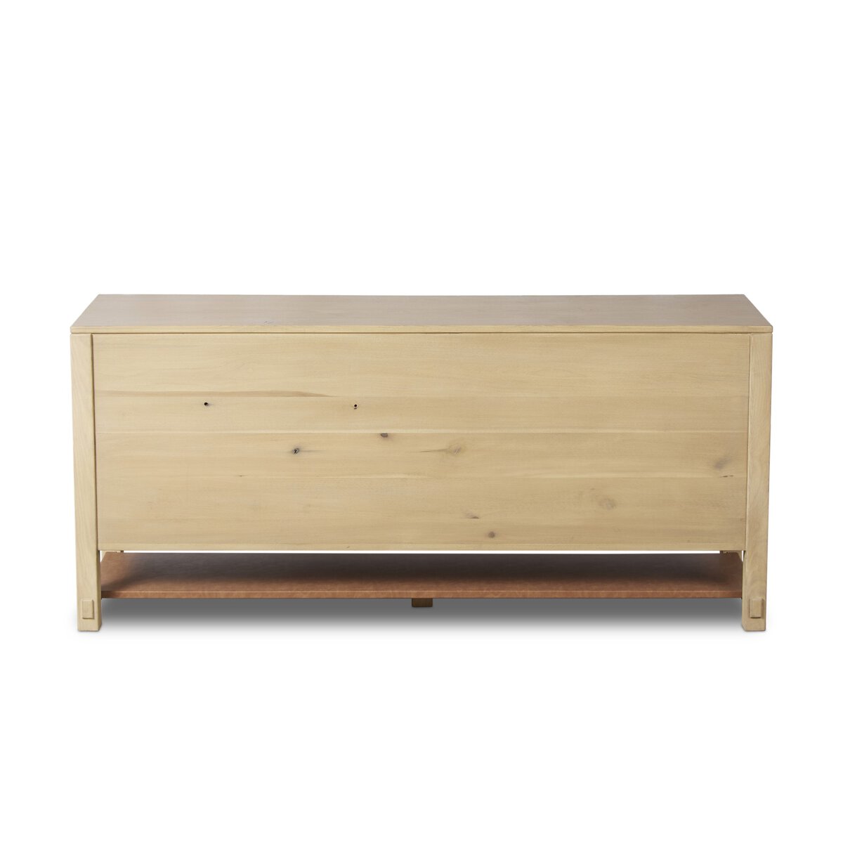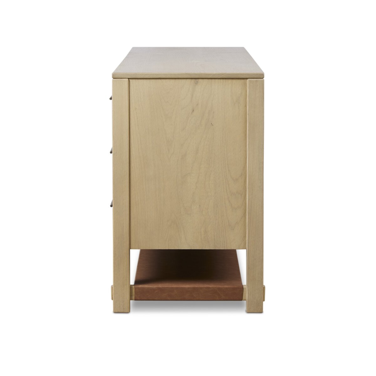Overall Dimensions 72.00"w x 20.50"d x 32.50"hItem Number 250452-001Colors Washed Ash, Brown Regenerated LeatherMaterials Solid Ash, Faux LeatherWeight 223.11 lbVolume 40.75 cu ftClearance from Floor 1 3.54"Drawer Depth 1 15.31"Drawer Height 1 5.00"Drawer Opening Depth 10.00"Drawer Width 1 31.77"Fixed Shelf Depth 1 20.08"Fixed Shelf Height 1 0.79"Fixed Shelf Width 1 72.05"Interior Section Depth 1 20.08"Interior Section Height 1 5.12"Interior Section Width 1 72.05"Anti-Tip Kit Included? YesDoor Type No DoorsDrawer Glide Color SilverDrawer Glide Type Undermount MetalDrawer Joinery English DovetailDrawer Quantity 6.00Drawer Stop Material NoneFixed Shelf Qty 1.00Fixed Shelves YesFrame Construction Joinery English DovetailFrame Construction Joinery Mortise and TenonFrame Construction Joinery NailsFrame Construction Joinery Tongue and GrooveFunctionality DrawersHas Soft Close Drawers YesInterior Section Quantity 1.00Protective Feet Leg LevelersShape Type WideSuite BlakeWeight Capacity 200 lb