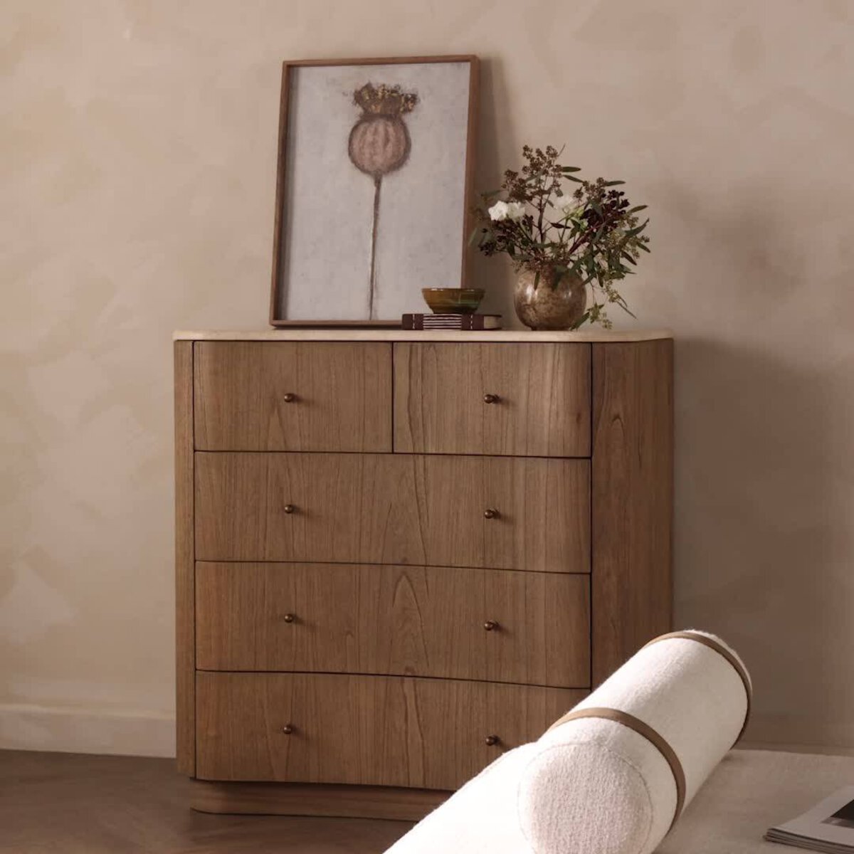 Overall Dimensions 38.75"w x 21.00"d x 39.50"hItem Number 249214-001Colors Sandy Mindi VeneerMaterials Mindi Veneer, Solid MindiWeight 221.10 lbVolume 32.45 cu ftClearance from Floor 1 3.00"Drawer Depth 1 17.99"Drawer Depth 2 17.99"Drawer Height 1 7.09"Drawer Height 2 7.09"Drawer Width 1 14.25"Drawer Width 2 31.23"Weight Capacity 100 lb