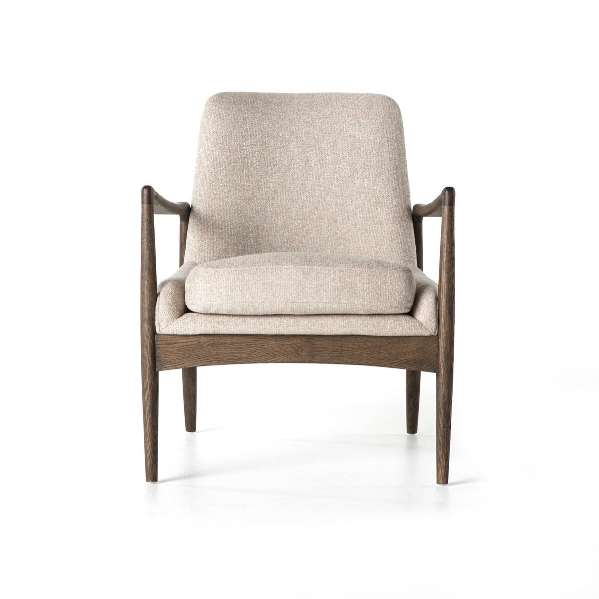 Overall Dimensions 27.25"w x 30.25"d x 32.25"hItem Number 105660-025Colors Light Camel, Warm OakMaterials 100% Polyester, Solid OakWeight 30.42 lbVolume 16.70 cu ftArm Height from Floor 24.41"Arm Height from Seat 6.26"Arm Length 20.24"Arm Width 2.99"Clearance from Floor 1 9.49"Distance between Legs (Front to Back) 1 26.50"Distance between Legs (Side to Side) 1 23.50"Seat Back Height 14.13"Seat Cushion Depth 1 21.73"Seat Cushion Thickness 1 4.25"Seat Cushion Width 1 18.54"Seat Depth 1 22.52"Seat Height 1 18.15"Seat Width (Back) 19.76"Seat Width (Front) 22.76"Chair Arm Option With ArmCleaning Code
