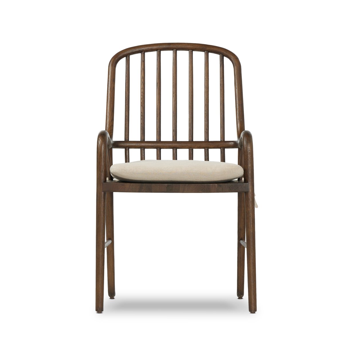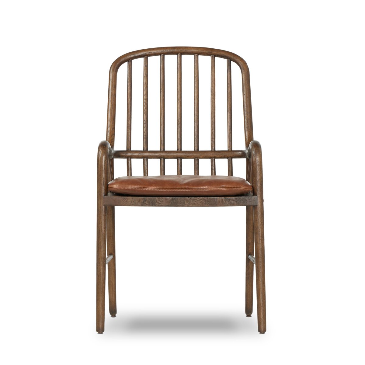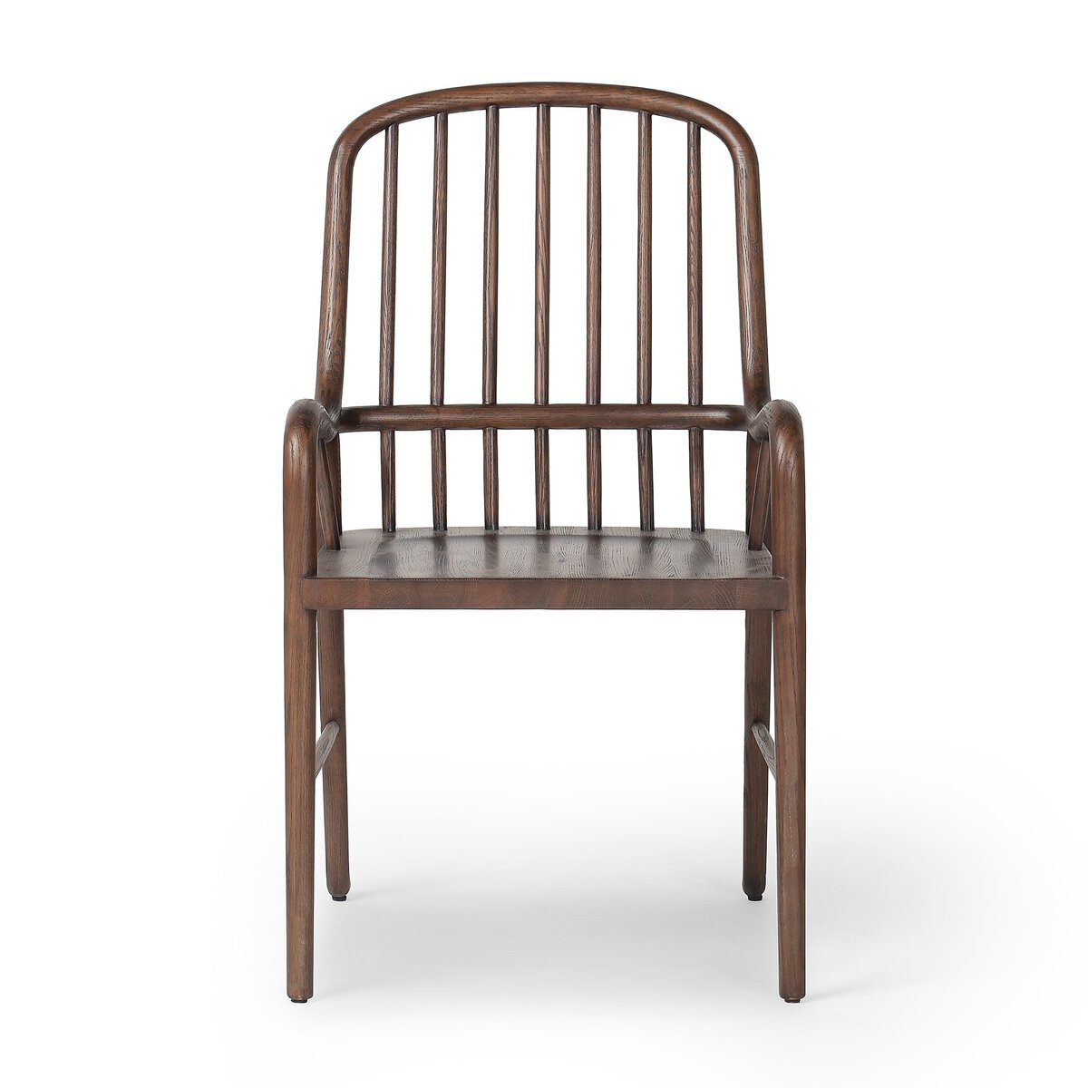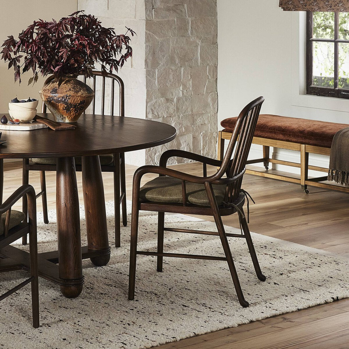 Inspired by antique Whistler dining chairs, this rich wood dining chair features a taller spindle back that flows seamlessly into the low arm design. A subtle kickback detail on the back legs adds something extra. A design collaboration by Amber Lewis and Four Hands. This item has limited online distribution and may not be sold on websites without prior approval. Visit the FAQ page in our Help Center for more details.