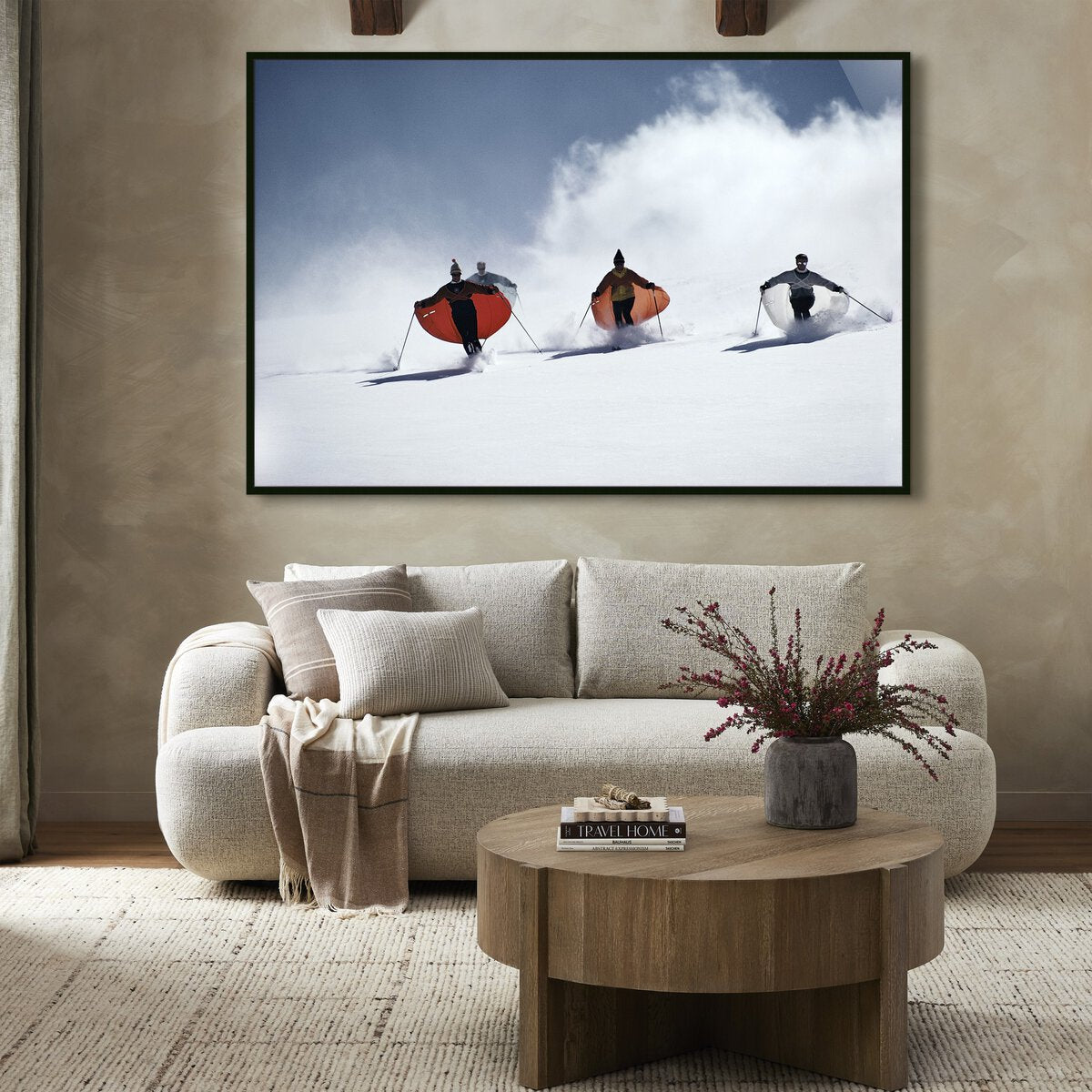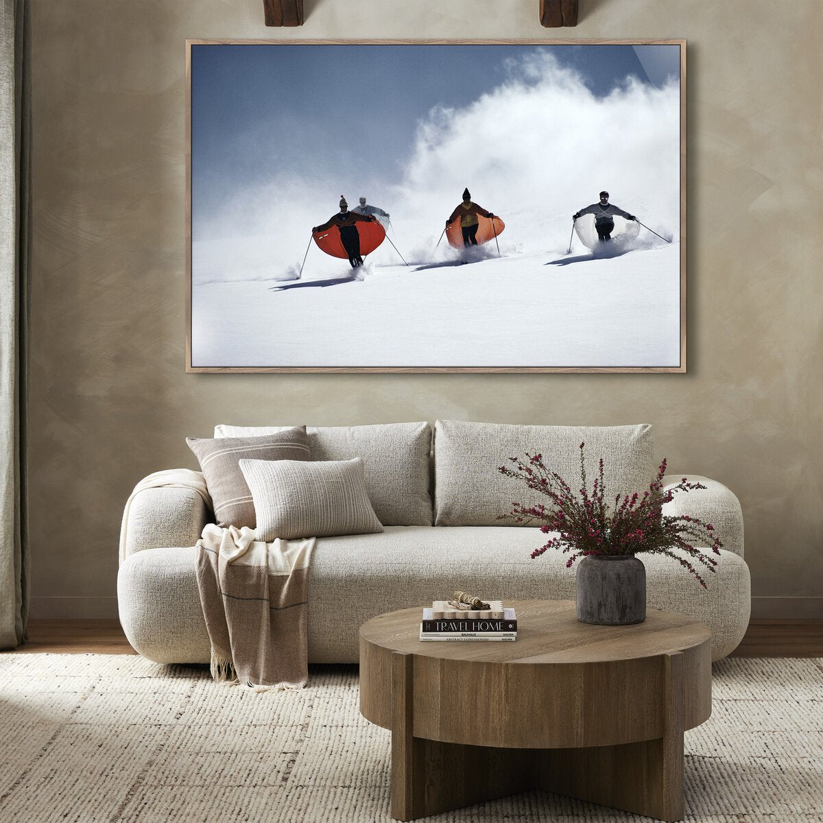 Artist Slim AaronsMain Color BlueOrientation HorizontalPresentation Style Framed MetalSize MediumSubject Portraits & FiguresSuite Caped Skiers