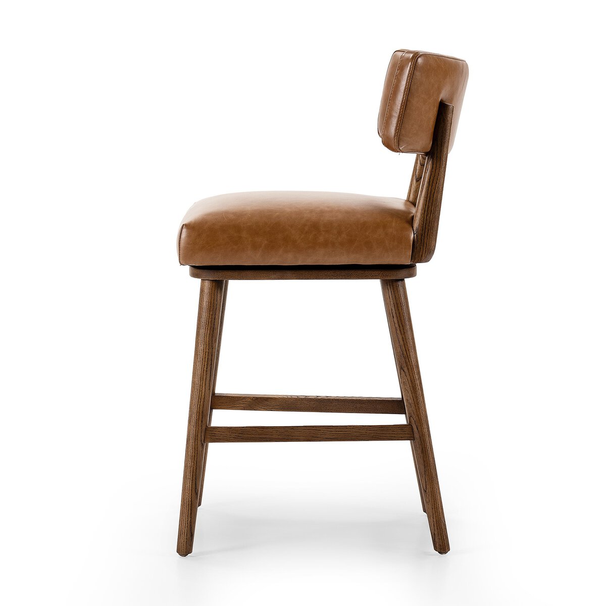 Natural solid parawood forms a curved barrel back on this everyday dining stool featuring a memory swivel. Plush cushioned seat and back are upholstered in a textural woven fabric.