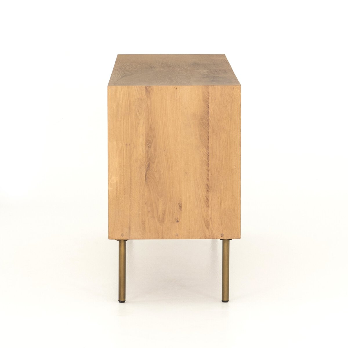 Overall Dimensions 62.00"w x 18.00"d x 30.00"hItem Number 101353-005Colors Natural Oak, Satin BrassMaterials Solid Oak, IronWeight 187.83 lbVolume 20.13 cu ftClearance from Floor 1 9.00"Drawer Depth 1 14.37"Drawer Depth 2 14.37"Drawer Height 1 3.66"Drawer Height 2 5.71"Drawer Width 1 27.56"Drawer Width 2 27.56"Door Type No DoorsDrawer Glide Color BlackDrawer Glide Type Sidemount MetalDrawer Inserts YesDrawer Joinery English DovetailDrawer Quantity 6.00Drawer Stop Anti Tip Rail YesDrawer Stop Material WoodFrame Construction Joinery Mortise and TenonFunctionality DrawersHas Leveler YesHas Soft Close Drawers YesProtective Feet Leg LevelersShape Type WideSuite CarlisleWeight Capacity 100 lb