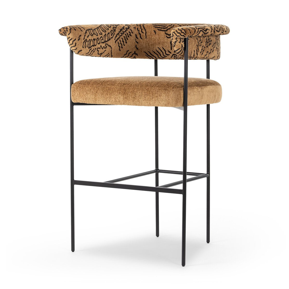 Overall Dimensions 25.50"w x 23.00"d x 39.50"hItem Number 108498-001Colors Light Camel, Matte BlackMaterials 100% Polyester, IronWeight 33.95 lbVolume 14.94 cu ftArm Height from Floor 39.50"Arm Height from Seat 9.00"Arm Length 19.50"Arm Width 3.00"Clearance from Floor 1 12.00"Distance between Legs (Front to Back) 1 19.50"Distance between Legs (Side to Side) 1 22.00"Seat Back Height 6.00"Seat Depth 1 19.00"Seat Height 1 30.50"Seat Width (Back) 14.50"Seat Width (Front) 19.50"Back Cushion Attachment FixedBack Cushion Qty 1.00Chair Arm Option With ArmCleaning Code