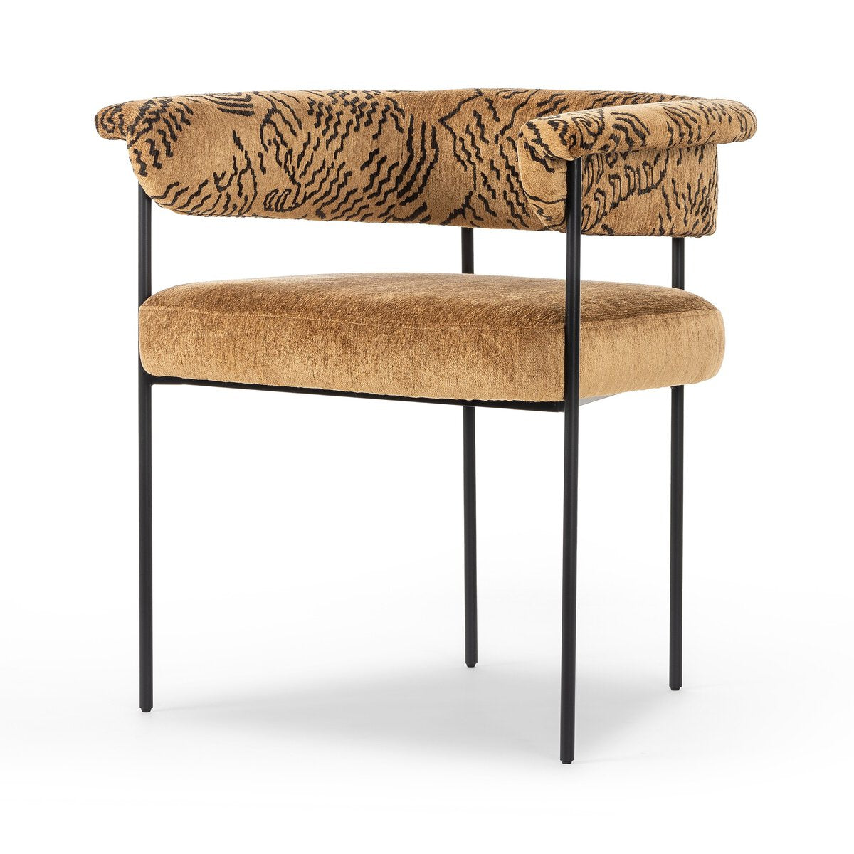 Overall Dimensions 25.50"w x 23.00"d x 27.50"hItem Number 108499-001Colors Light Camel, Matte BlackMaterials 100% Polyester, IronWeight 29.54 lbVolume 11.09 cu ftArm Height from Floor 27.50"Arm Height from Seat 8.00"Arm Length 19.50"Arm Width 3.00"Clearance from Floor 1 15.00"Distance between Legs (Front to Back) 1 19.50"Distance between Legs (Side to Side) 1 22.00"Seat Back Height 6.00"Seat Depth 1 19.00"Seat Height 1 19.50"Seat Width (Back) 14.50"Seat Width (Front) 19.50"Back Cushion Attachment FixedBack Cushion Qty 1.00Chair Arm Option With ArmCleaning Code