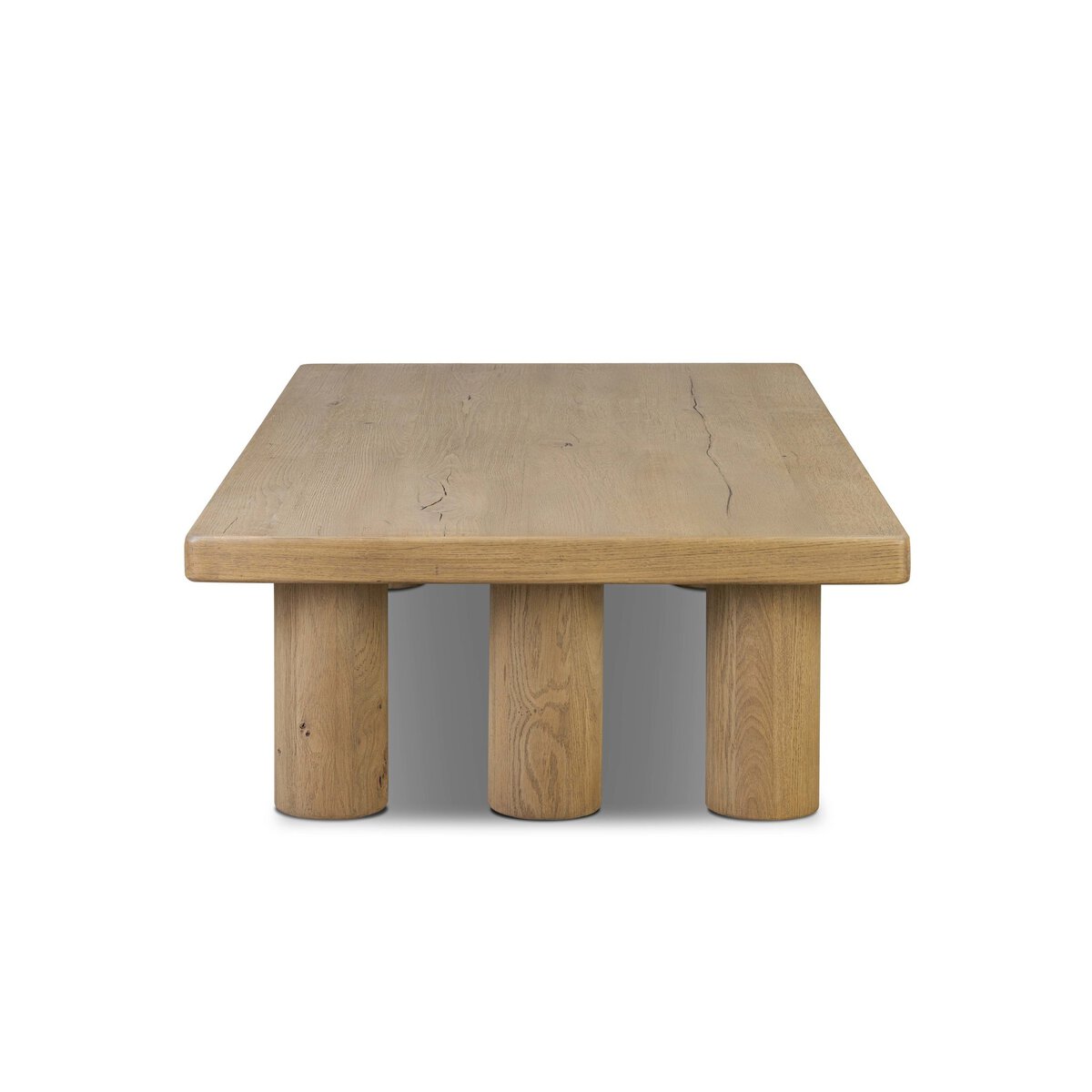 Overall Dimensions 65.00"w x 35.00"d x 15.00"hItem Number 251148-001Colors Aged Natural Oak VeneerMaterials Thick Oak Veneer, Solid OakWeight 202.82 lbVolume 13.35 cu ftClearance from Floor 1 12.36"Distance between Legs (Front to Back) 1 5.08"Distance between Legs (Side to Side) 1 49.72"Leg/Base Depth 1 5.63"Leg/Base Height 1 12.36"Leg/Base Width 1 5.63"Overhang Width 1 2.01"Tabletop Thickness 2.64"Drawer Glide Type NoneDrawer Stop Material NoneFrame Construction Joinery NailsFunctionality NoneHas Leveler YesProtective Feet Leg LevelersShape Type RectangleSuite CarriganWeight Capacity 100 lb