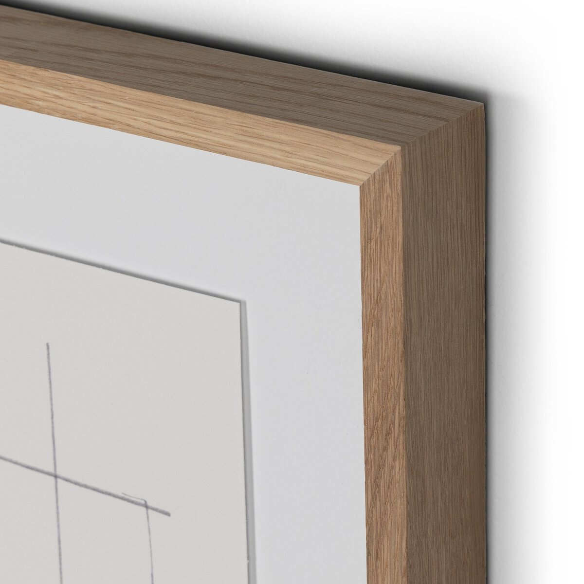 Artist Dan Hobday finds inspiration in the coastal landscapes of his hometown of Devon, England. This shape-driven piece is printed on matte paper and framed within vertical grain oak for a gallery-quality look. Handmade in Austin, Texas.