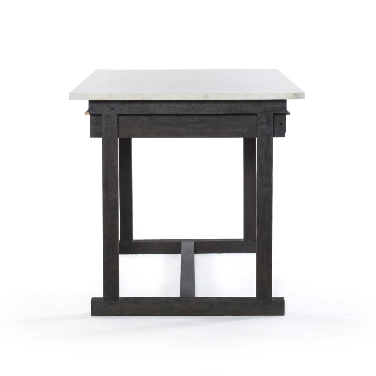 Overall Dimensions 60.00"w x 36.00"d x 36.00"hItem Number IHRM-096Colors Polished White Marble, Dark Anthracite, Aged Brass IronMaterials Solid Marble, Solid Acacia, Cast IronWeight 353.40 lbVolume 30.16 cu ftClearance from Floor 1 28.50"Distance between Legs (Side to Side) 1 47.00"Drawer Depth 1 13.50"Drawer Height 1 3.00"Drawer Width 1 20.00"Leg/Base Depth 1 31.00"Leg/Base Height 1 35.00"Leg/Base Width 1 52.00"Overhang Width 1 4.00"Tabletop Thickness 1.00"Door Type No DoorsDrawer Glide Color WoodDrawer Glide Type Undermount WoodDrawer Joinery English DovetailDrawer Quantity 4.00Drawer Stop Anti Tip Rail YesDrawer Stop Material MetalFunctionality DrawersHas Leveler YesProtective Feet Leg LevelersSeating Capacity 4.00Shape Type RectangleSize CounterSuite CaysonWeight Capacity 100 lb