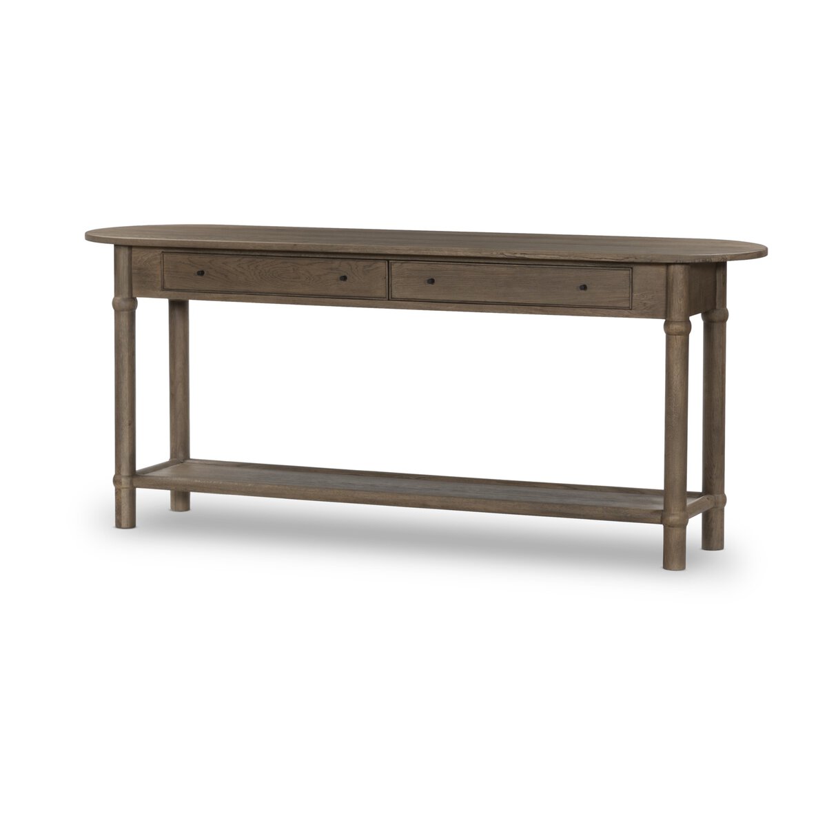 Door Type No DoorsDrawer Glide Type NoneDrawer Quantity 2.00Drawer Stop Anti Tip Rail YesDrawer Stop Material WoodFixed Shelf Qty 1.00Fixed Shelves YesFrame Construction Joinery Mortise and TenonFunctionality DrawersFunctionality ShelvesInterior Section Quantity 1.00Shape Type OvalSuite CharnesWeight Capacity 200 lb