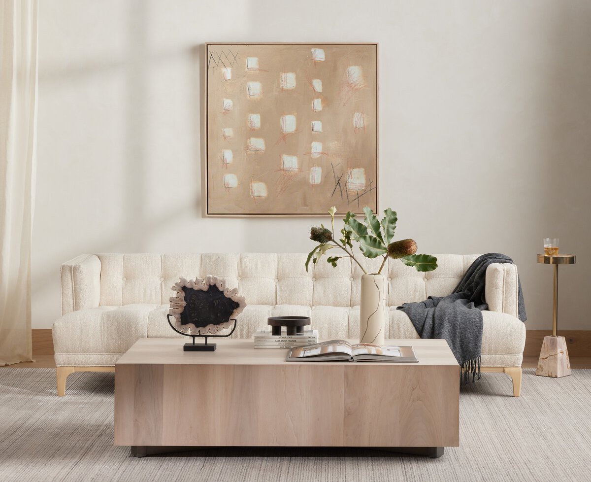 Overall Dimensions 32.00"w x 2.00"d x 32.00"hItem Number 232095-002Colors Natural Maple Floater, Matte CanvasMaterials American Maple, Matte CanvasWeight 20.00 lbVolume 3.18 cu ftArtist Jamie BeckwithMain Color NeutralOrientation SquarePresentation Style Canvas Floater FramedSize MediumSubject AbstractSuite Cinnamon Billet