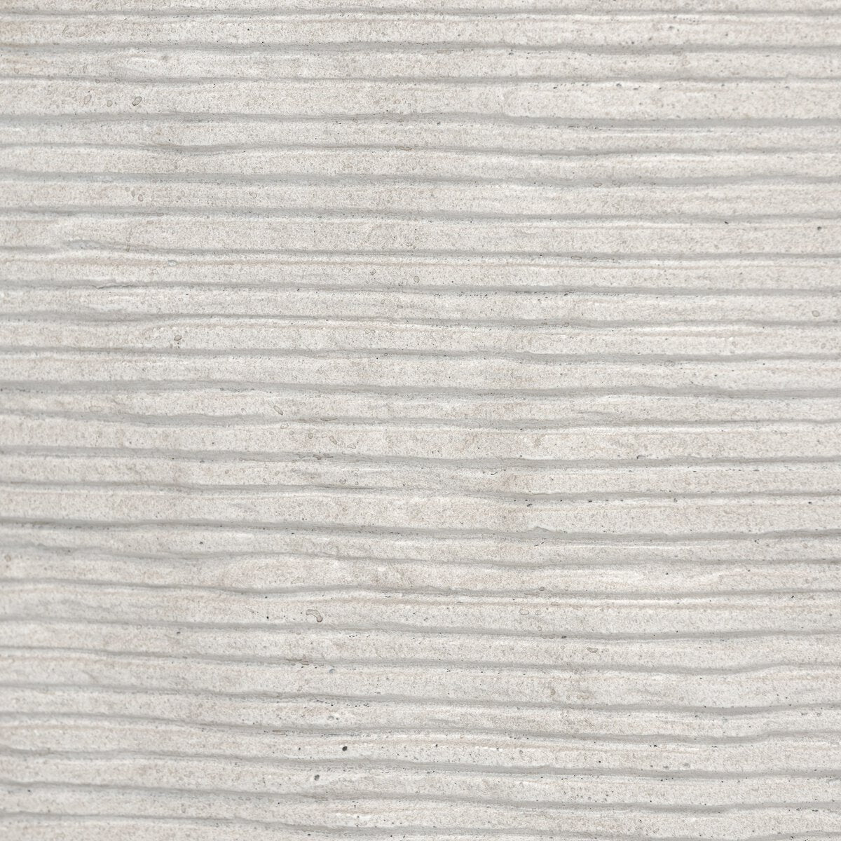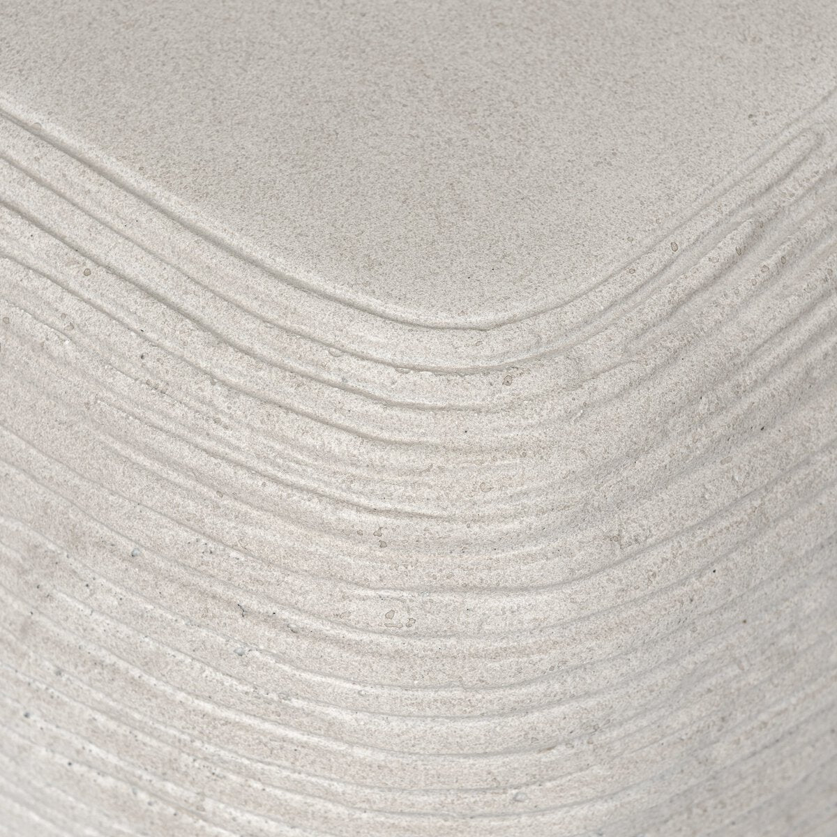 Smooth concrete is etched with a linear pattern, bringing an organic look with texture to this block-style end table.