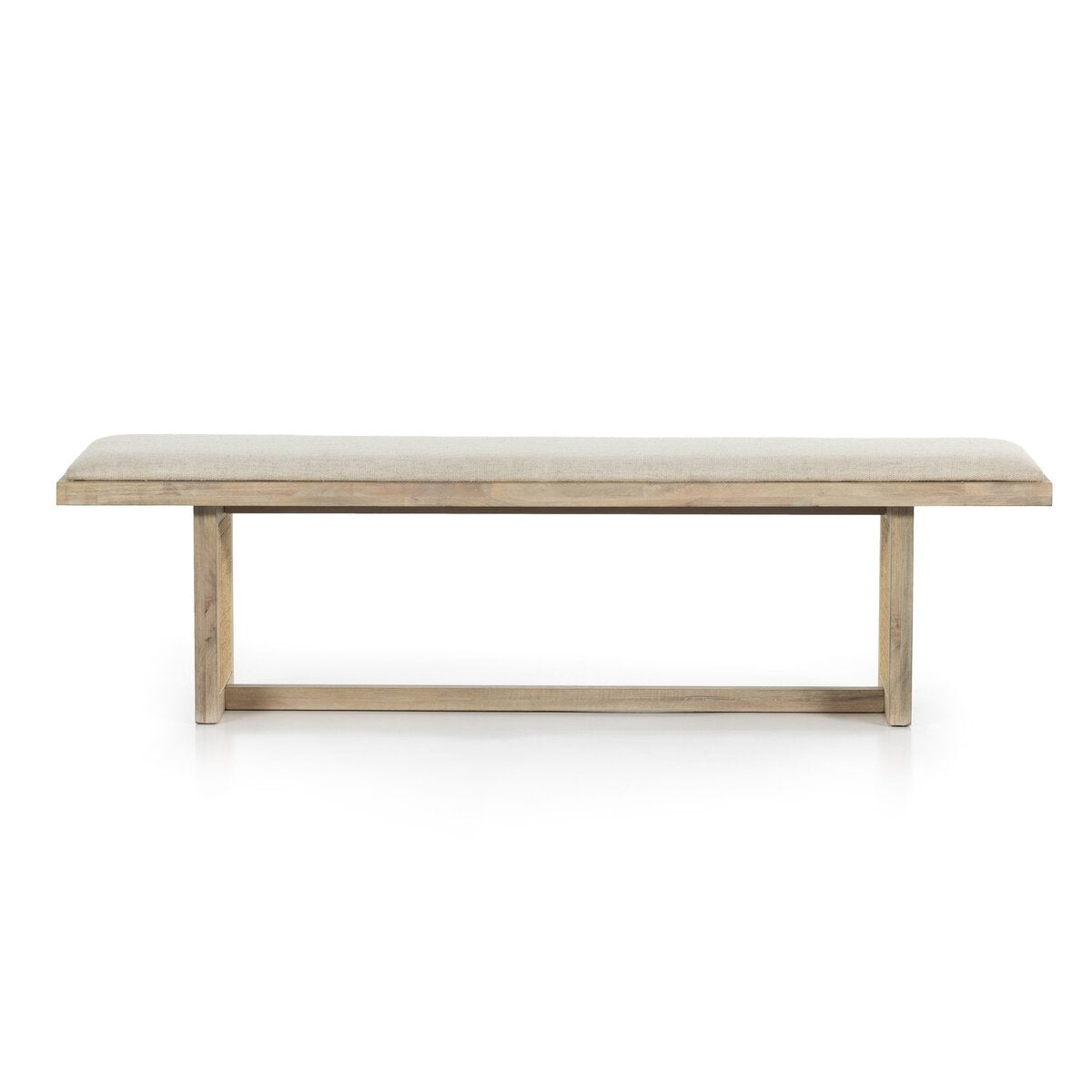 Overall Dimensions 74.00"w x 18.00"d x 20.00"hItem Number 228026-001Colors Thames Cream, White Wash Mango, Natural CaneMaterials 66% Polyester, 19% Acrylic, 15% Flax/Linen, Solid Mango, CaneFabric PerformanceWeight 70.55 lbVolume 11.80 cu ftClearance from Floor 1 16.77"Distance between Legs (Side to Side) 1 50.55"Seat Depth 1 16.57"Seat Height 1 20.00"Seat Width (Back) 72.60"Seat Width (Front) 72.60"Seat Width 1 72.60"Chair Arm Option ArmlessCleaning Code