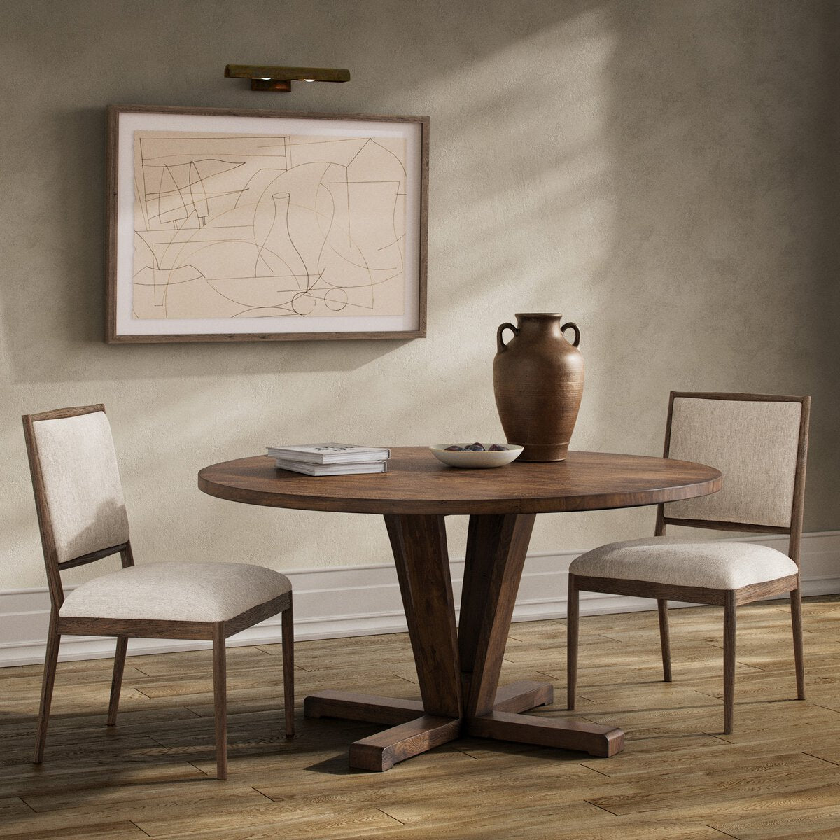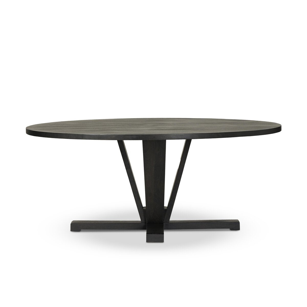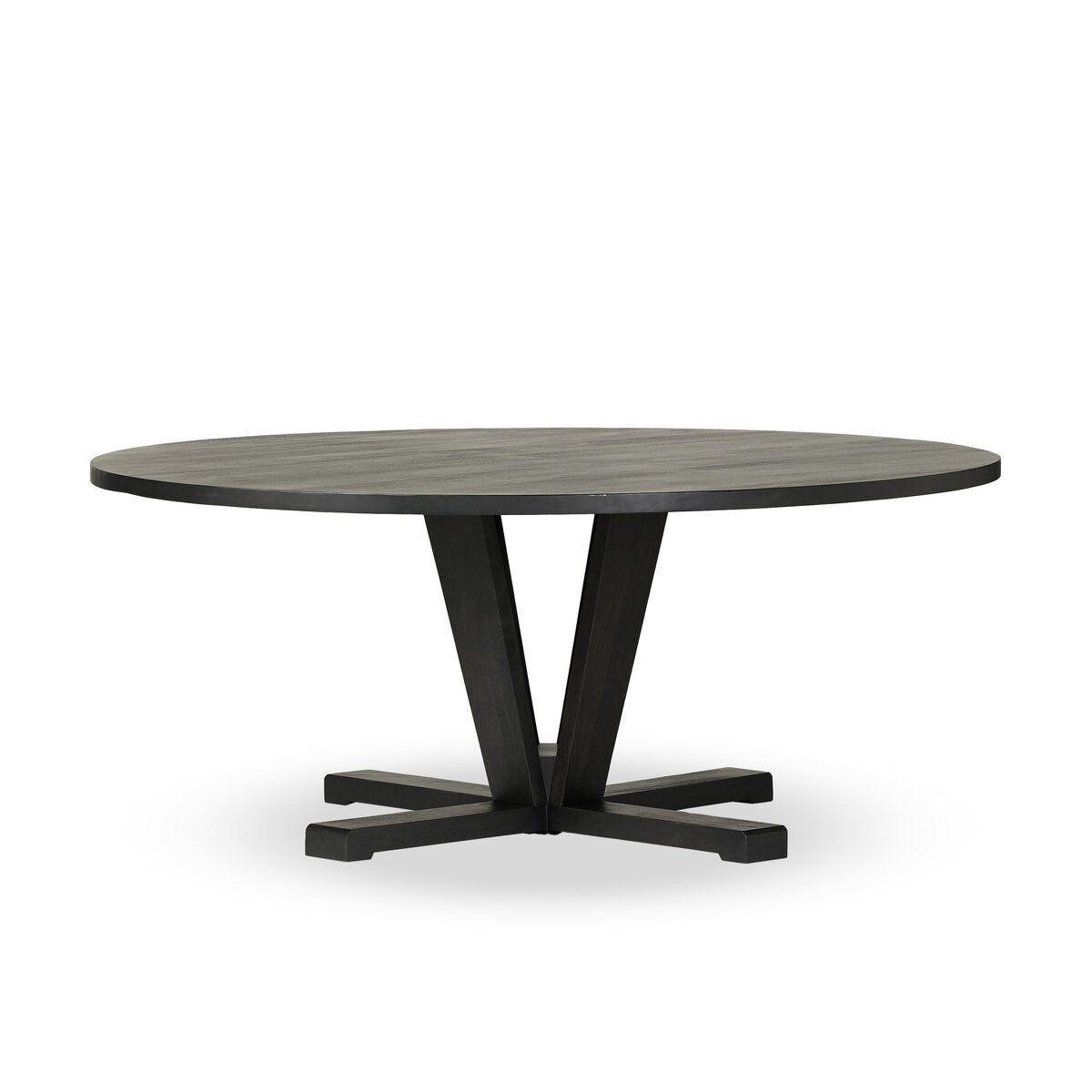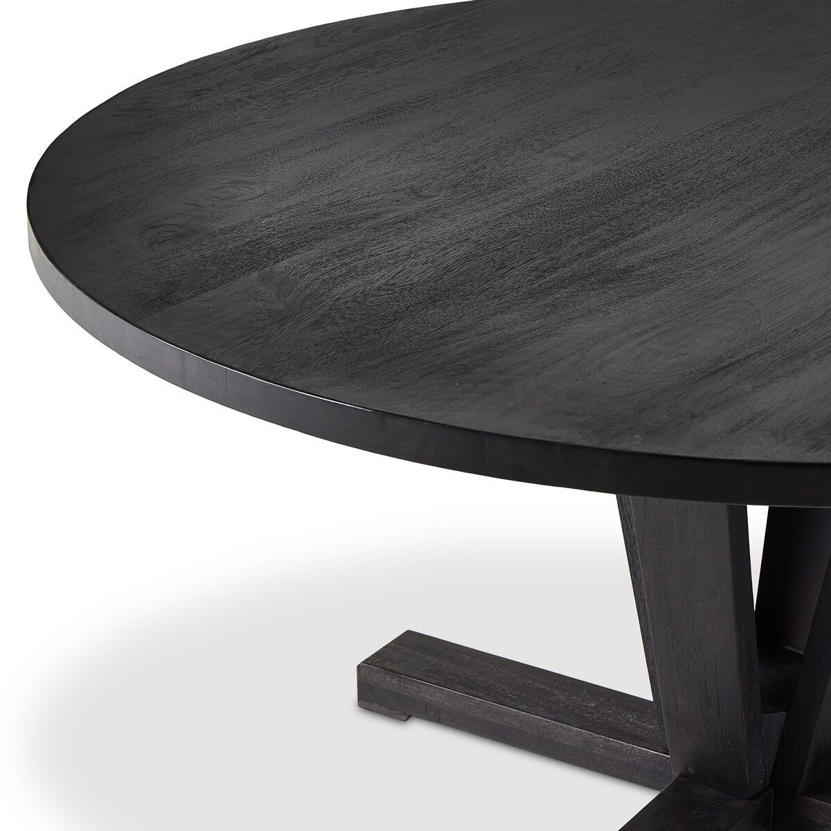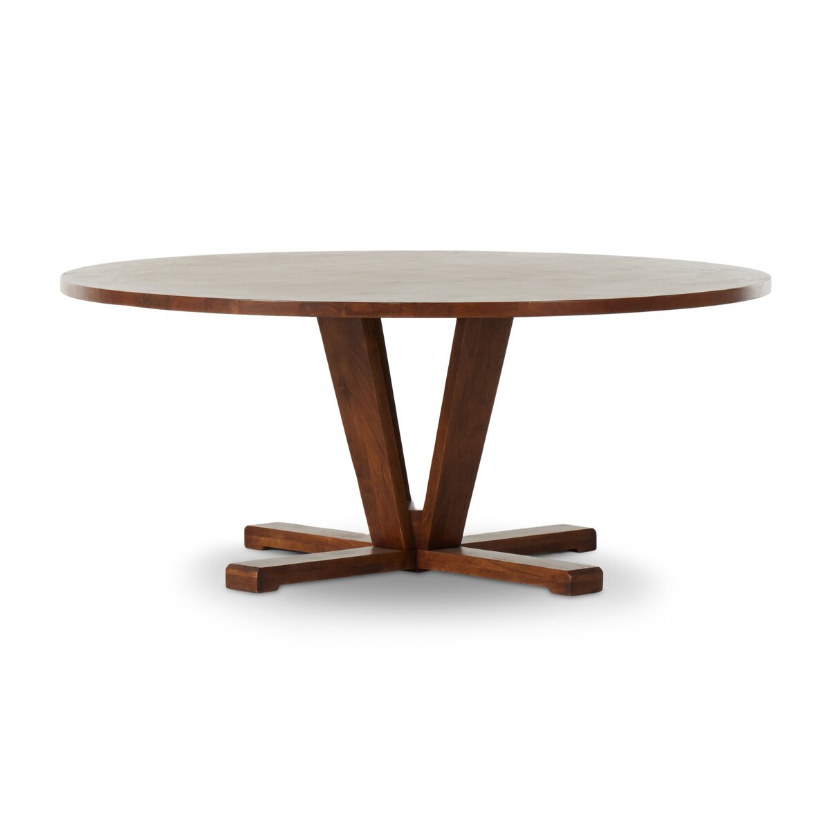 Overall Dimensions 60.00"w x 60.00"d x 30.00"hItem Number IHRM-083Colors Reclaimed MangoMaterials Solid MangoWeight 137.35 lbVolume 21.97 cu ftClearance from Floor 1 28.50"Distance between Legs (Side to Side) 1 25.25"Leg/Base Depth 1 40.00"Leg/Base Height 1 27.25"Leg/Base Width 1 40.00"Opening for Seating Height 27.25"Overhang Width 1 10.00"Tabletop Thickness 1.50"Drawer Glide Type NoneDrawer Stop Material NoneFunctionality NoneHas Leveler YesProtective Feet Leg LevelersSeating Capacity 6.00Shape Type RoundSuite CobainTable Type TrestleWeight Capacity 100 lb