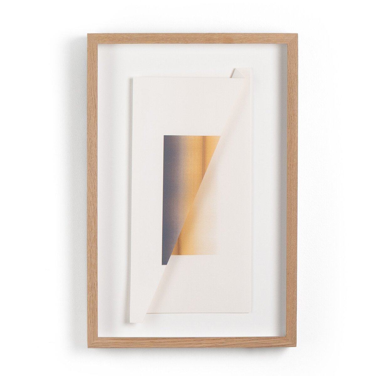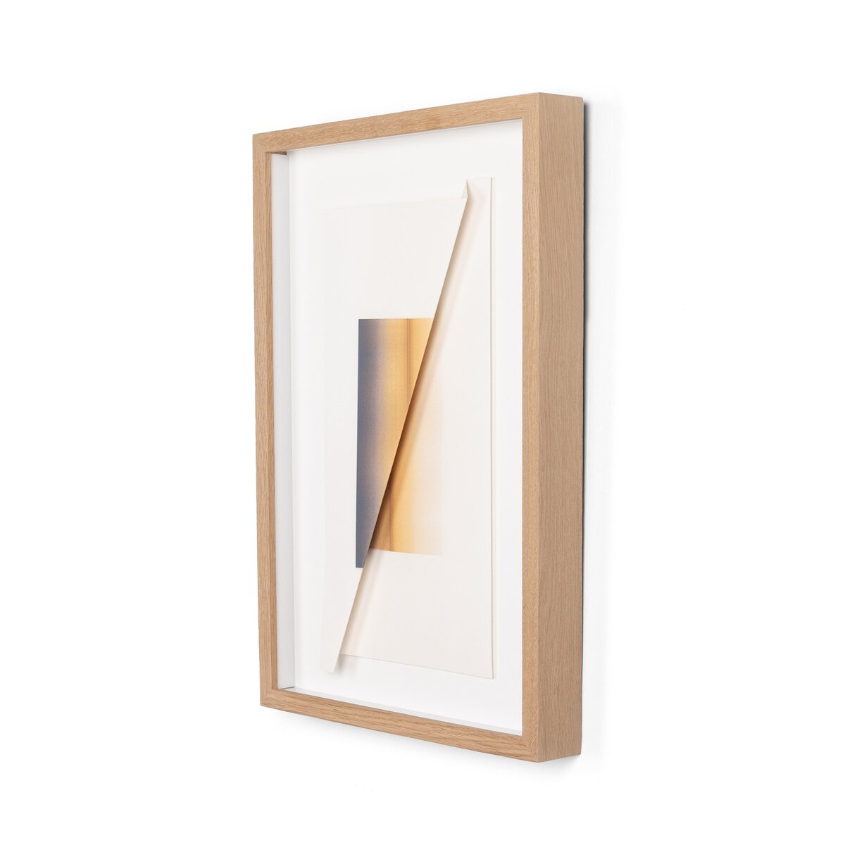 Guided by daily mindfulness, New Mexico-based artist David Grey looks to color and shape to define his often-digitally manipulated graphics. This unique piece features dyed, folded paper, framed within vertical grain white oak for a museum-quality look. Handmade in Austin, Texas.