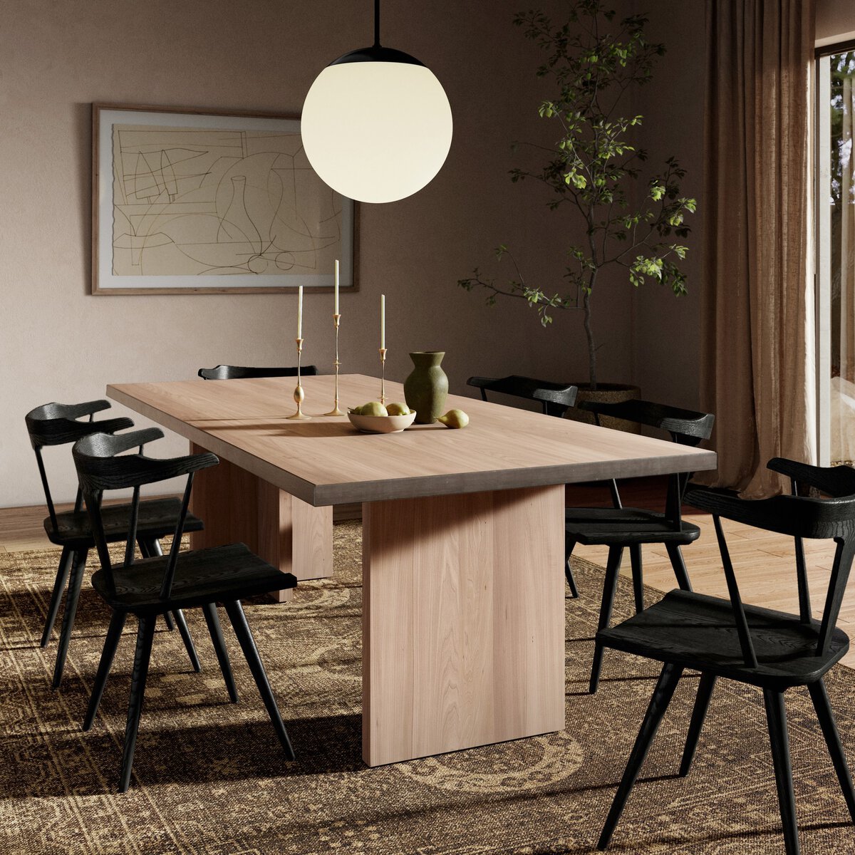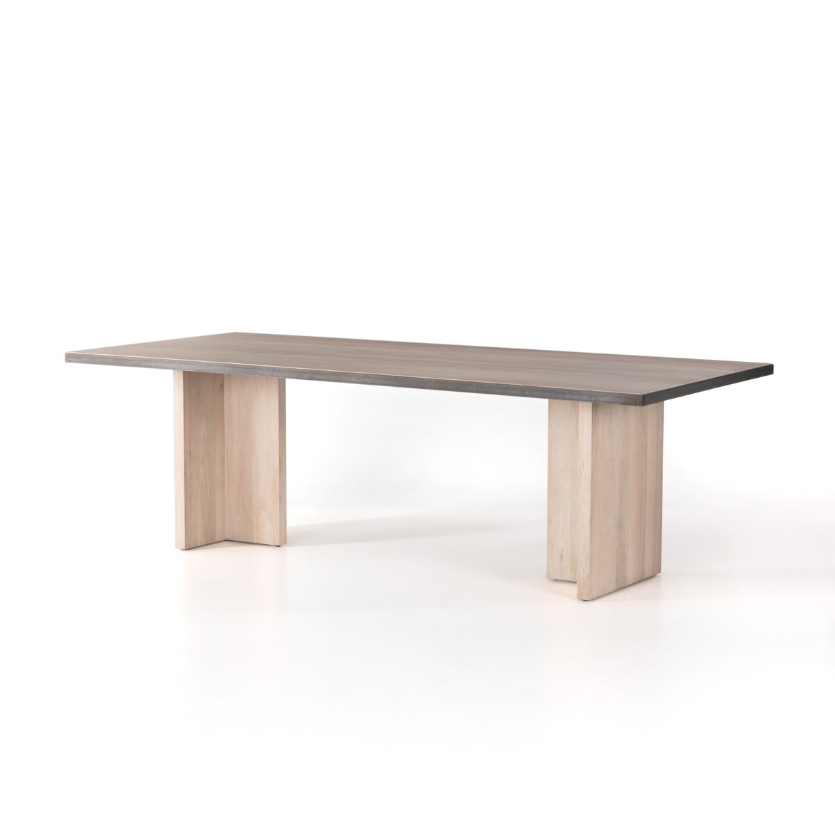Overall Dimensions 94.00"w x 42.00"d x 30.00"hItem Number 104204-002Colors Ashen Walnut, GunmetalMaterials Thick Walnut Veneer, IronWeight 182.98 lbVolume 36.59 cu ftClearance from Floor 1 28.39"Distance between Legs (Side to Side) 1 65.98"Leg/Base Depth 1 22.00"Leg/Base Height 1 28.30"Leg/Base Width 1 12.01"Opening for Seating Height 28.38"Overhang Width 1 12.00"Tabletop Thickness 1.63"Drawer Glide Type NoneDrawer Stop Material NoneFrame Construction Joinery Butt JointFrame Construction Joinery Edge Banded VeneerFrame Construction Joinery Mortise and TenonFunctionality NoneSeating Capacity 10.00Shape Type RectangleSuite CrossTable Type Double PedestalWeight Capacity 200 lb