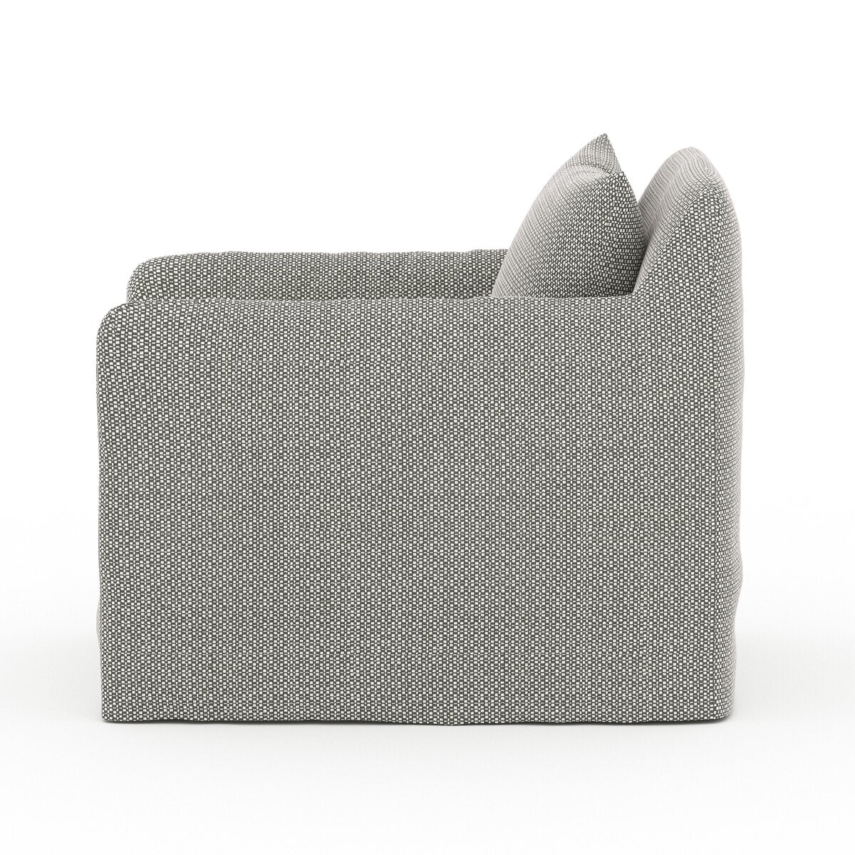 A fresh, outdoor-friendly spin on the swivel chair. Removable stone grey slipcover meets style with sensibility. Great in pairs. Cover or store inside during inclement weather and when not in use.