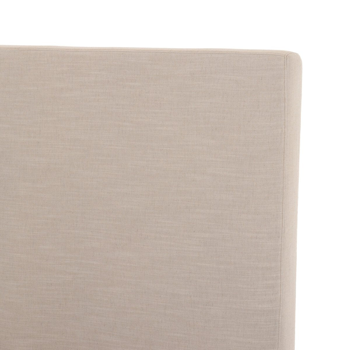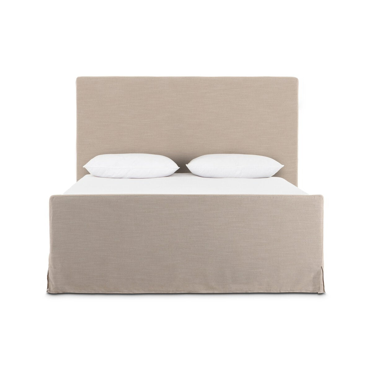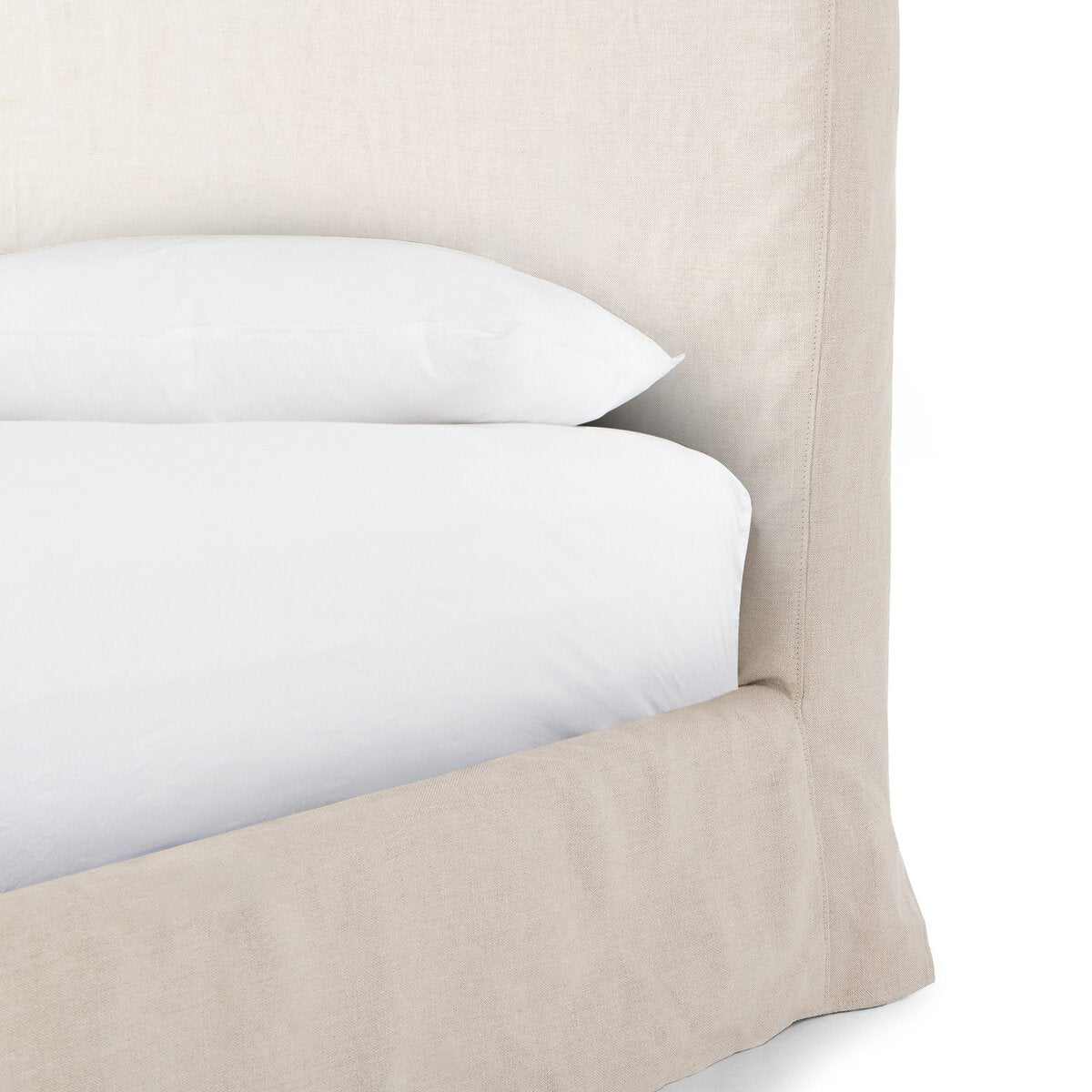 Overall Dimensions 83.25"w x 90.00"d x 59.50"hItem Number 234702-002Colors Brussels Natural, AlmondMaterials 100% Flax/Linen, Solid ParawoodWeight 230.82 lbVolume 34.96 cu ftClearance from Footboard 2.00"Clearance from Headboard 2.00"Clearance from Side Rails 2.00"Distance between Slats 3.50"Floor to Top of Slat Height 9.25"Footboard Height 24.50"Footboard Thickness 3.25"Footboard Width 83.25"Headboard Height 59.50"Headboard Thickness 5.75"Headboard Width 83.27"Interior Dimension for Mattress Depth 81.00"Interior Dimension for Mattress Height 3.00"Interior Dimension for Mattress Width 76.75"Side Rails Height 12.25"Side Rails Length 81.00"Side Rails Thickness 3.25"Adjustable Bed Frame Compatible YesBed Backing Dark FabricBed Material UpholsteredBox Spring Required Not RequiredCleaning Code