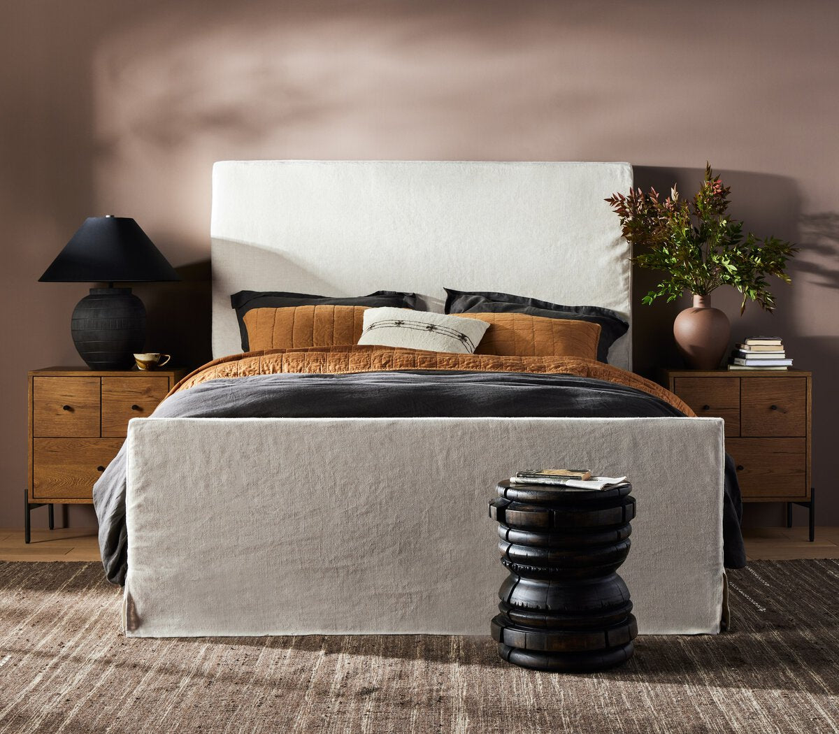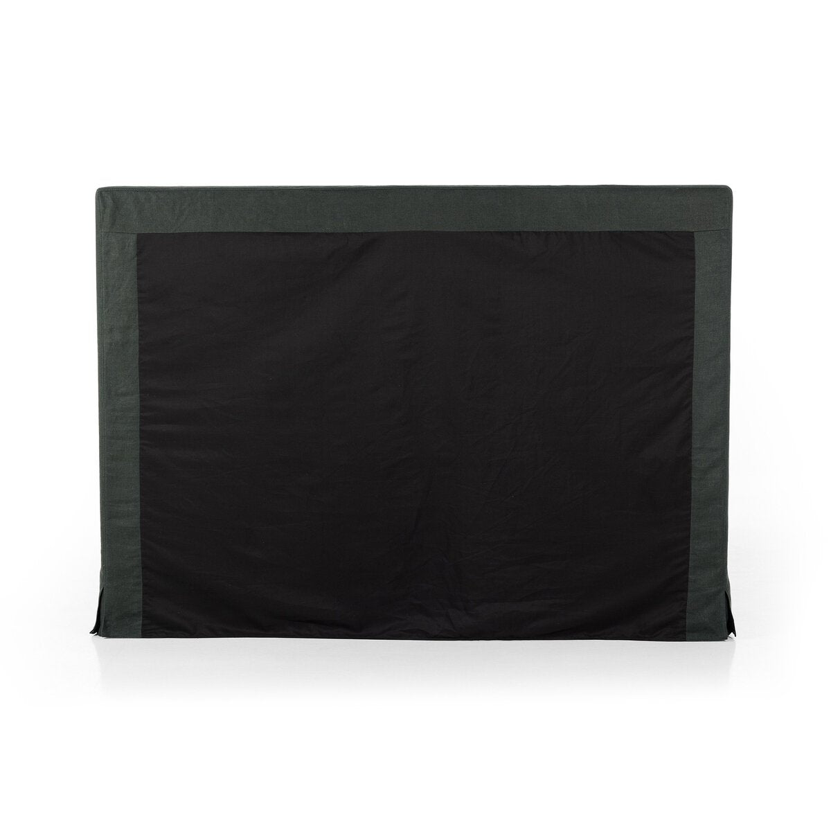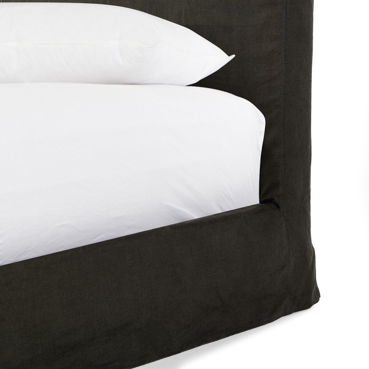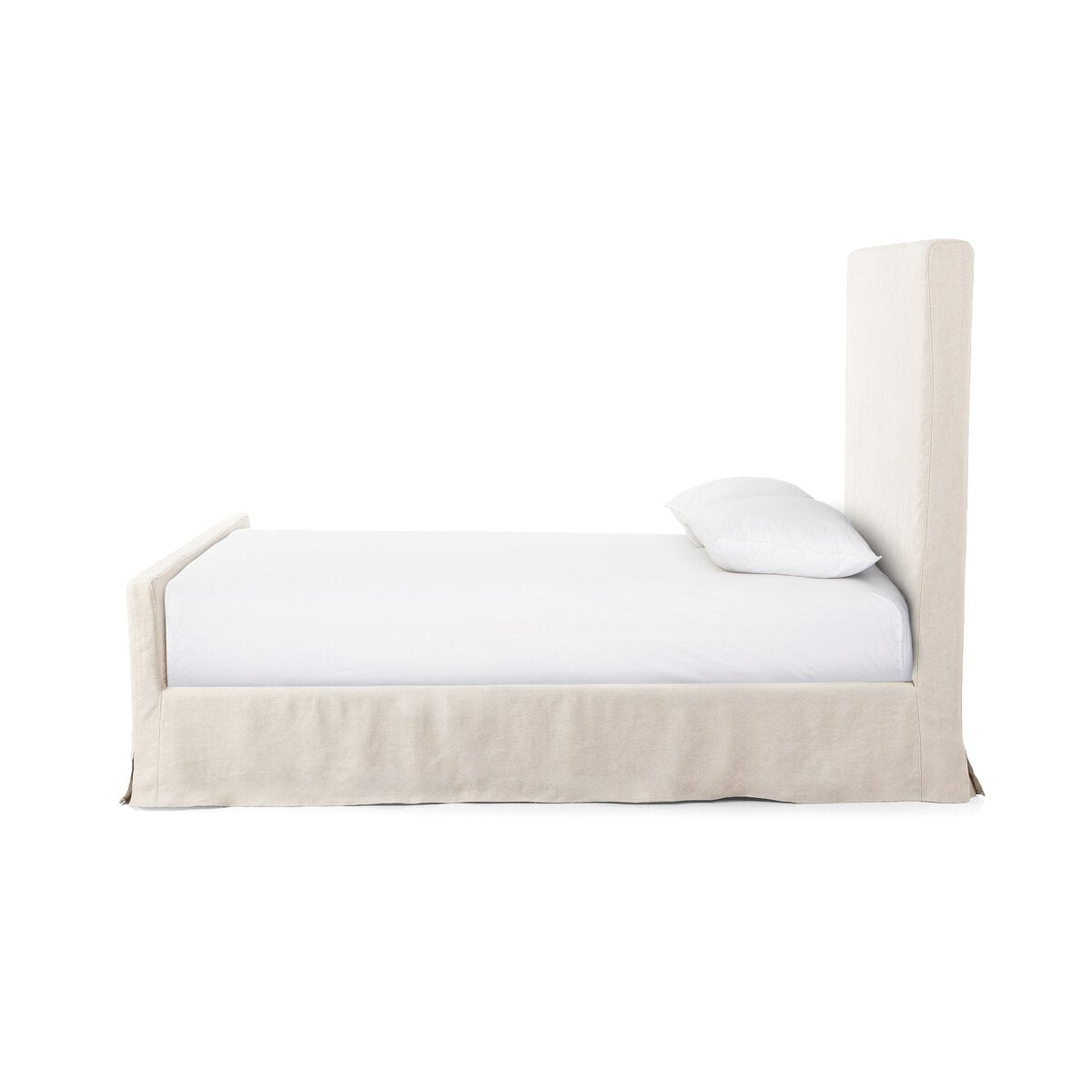 Overall Dimensions 83.25"w x 90.00"d x 59.50"hItem Number 234702-002Colors Brussels Natural, AlmondMaterials 100% Flax/Linen, Solid ParawoodWeight 230.82 lbVolume 34.96 cu ftClearance from Footboard 2.00"Clearance from Headboard 2.00"Clearance from Side Rails 2.00"Distance between Slats 3.50"Floor to Top of Slat Height 9.25"Footboard Height 24.50"Footboard Thickness 3.25"Footboard Width 83.25"Headboard Height 59.50"Headboard Thickness 5.75"Headboard Width 83.27"Interior Dimension for Mattress Depth 81.00"Interior Dimension for Mattress Height 3.00"Interior Dimension for Mattress Width 76.75"Side Rails Height 12.25"Side Rails Length 81.00"Side Rails Thickness 3.25"Adjustable Bed Frame Compatible YesBed Backing Dark FabricBed Material UpholsteredBox Spring Required Not RequiredCleaning Code