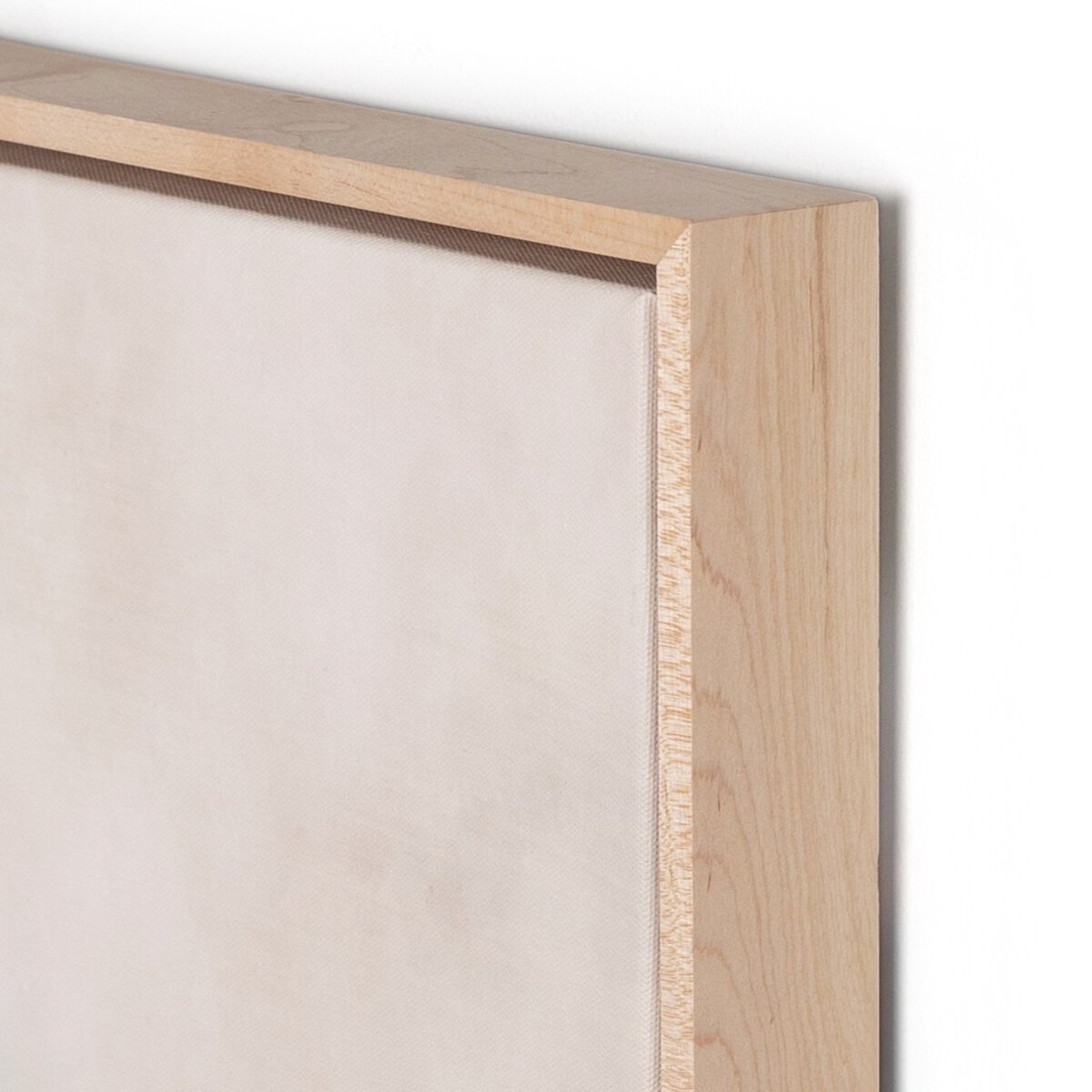 Artist Dan Hobday finds inspiration in the coastal landscapes of his hometown of Devon, England. This forest-inspired piece is printed on matte white canvas with spot gloss detailing and framed within natural American maple for a gallery-quality look. If not currently in stock, this texture-enhanced piece ships within three weeks. Handmade in Austin, Texas.