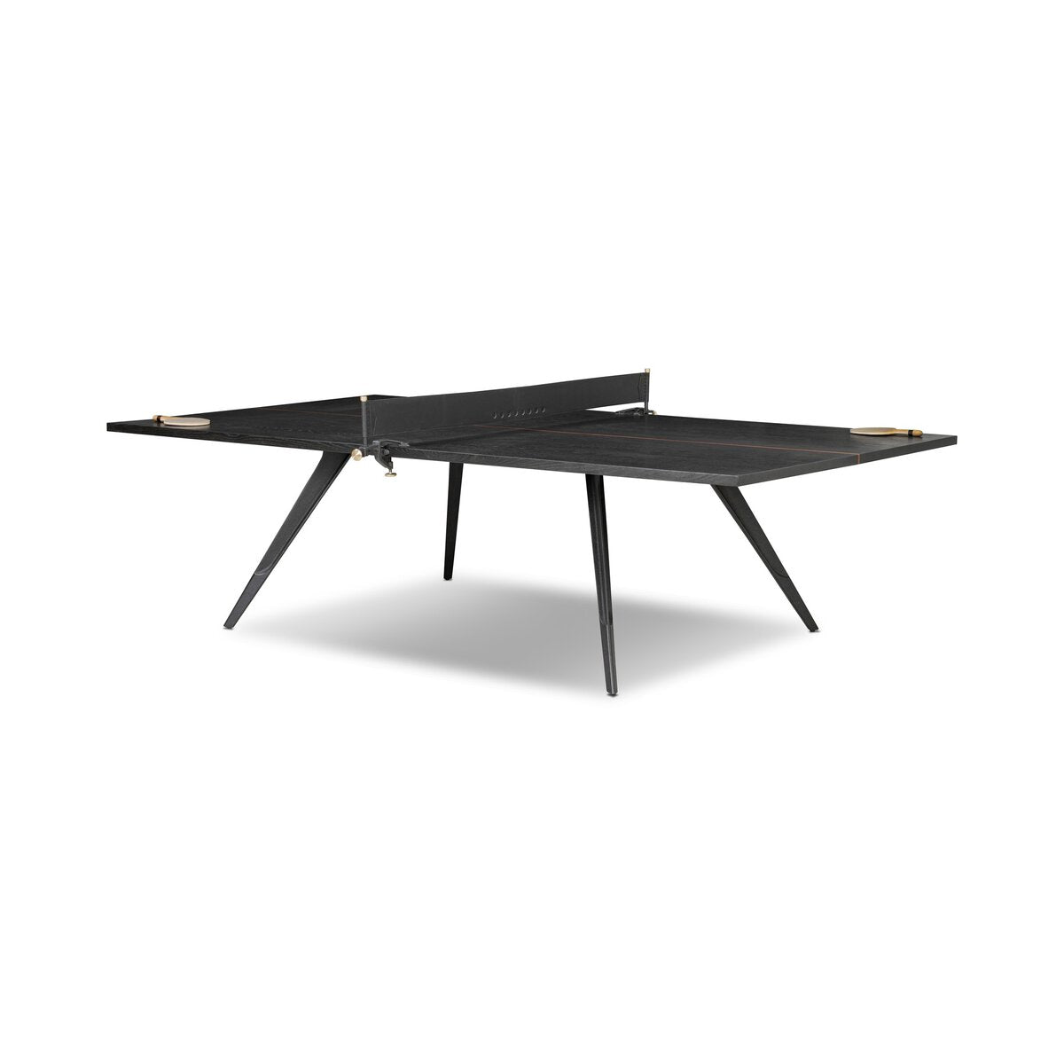 Overall Dimensions 107.75"w x 59.75"d x 36.50"hItem Number 251709-001Colors Ink Black Leather, Sepia Leather, Cast IronMaterials Top Grain Leather, Cast IronWeight 319.67 lbVolume 15.36 cu ftBall Diameter 1.57"Clearance from Floor 1 28.03"Distance between Legs (Front to Back) 1 48.70"Distance between Legs (Side to Side) 1 66.42"Leg/Base Depth 1 1.65"Leg/Base Height 1 28.03"Leg/Base Width 1 1.65"Opening for Seating Height 28.03"Overhang Width 1 19.07"Paddle Depth 0.55"Paddle Height 10.24"Paddle Width 6.14"Playing Surface Depth 107.87"Playing Surface Width 59.84"Removable Net Height 4.72"Removable Net Width 64.80"Ball Material PlasticBalls Included Qty 2.00Cleaning Code