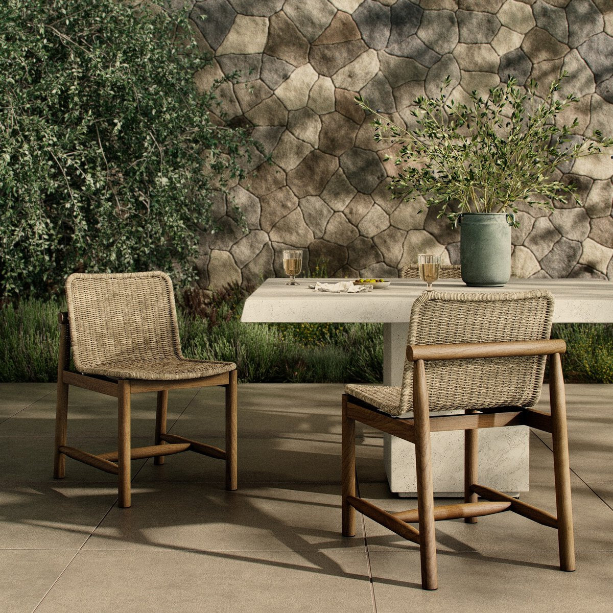 Overall Dimensions 19.75"w x 25.75"d x 32.00"hItem Number 241546-002Colors Vintage White, Stained Saddle Brown FSCMaterials 100% Polyethylene, Solid FSC®-Certified TeakWeight 17.64 lbVolume 11.48 cu ftClearance from Floor 1 3.94"Distance between Legs (Front to Back) 1 20.08"Distance between Legs (Side to Side) 1 15.75"Seat Back Height 12.87"Seat Depth 1 18.11"Seat Height 1 19.02"Seat Width 1 18.35"Chair Arm Option ArmlessCleaning Code