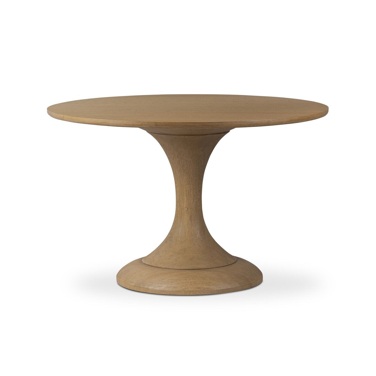 Overall Dimensions 48.00"w x 48.00"d x 30.00"hItem Number 241463-004Colors Light Weathered Oak VeneerMaterials Oak Veneer, Solid OakWeight 168.65 lbVolume 25.89 cu ftClearance from Floor 1 28.90"Leg/Base Depth 1 25.35"Leg/Base Height 1 28.90"Leg/Base Width 1 25.35"Opening for Seating Height 28.90"Overhang Width 1 11.32"Tabletop Thickness 1.10"Drawer Glide Type NoneDrawer Stop Material NoneFrame Construction Joinery English DovetailFrame Construction Joinery Floating ConstructionFrame Construction Joinery French DovetailFunctionality NoneHas Leveler YesProtective Feet Leg LevelersSeating Capacity 4.00Shape Type RoundSuite EastmanTable Type PedestalWeight Capacity 100 lb