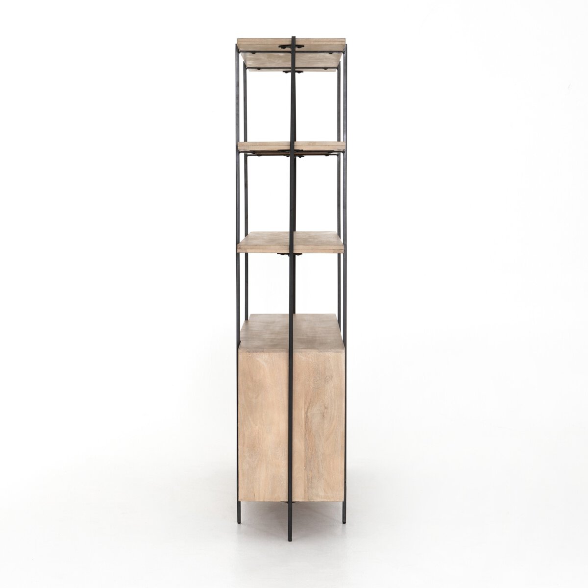 Overall Dimensions 65.00"w x 17.75"d x 76.75"hItem Number IPRS-027Colors Satin Black, Natural MangoMaterials Iron, Solid MangoWeight 174.17 lbVolume 29.91 cu ftClearance from Floor 1 5.53"Door Height 1 22.25"Door Thickness 1 1.00"Door Width 1 18.00"Fixed Shelf Depth 1 16.33"Fixed Shelf Depth 2 15.74"Fixed Shelf Height 1 0.98"Fixed Shelf Height 2 0.39"Fixed Shelf Width 1 63.78"Fixed Shelf Width 2 37.87"Interior Section Depth 1 16.33"Interior Section Depth 2 16.33"Interior Section Depth 3 16.33"Interior Section Depth 4 15.74"Interior Section Depth 5 15.74"Interior Section Depth 6 15.74"Interior Section Depth 7 15.74"Interior Section Height 1 14.56"Interior Section Height 2 14.56"Interior Section Height 3 14.56"Interior Section Height 4 23.50"Interior Section Height 5 23.50"Interior Section Height 6 11.73"Interior Section Height 7 11.73"Interior Section Width 1 63.78"Interior Section Width 2 63.78"Interior Section Width 3 63.78"Interior Section Width 4 11.14"Interior Section Width 5 11.14"Interior Section Width 6 37.87"Interior Section Width 7 37.87"Removable Shelf (Fixed or Adjustable) Depth 1 15.75"Removable Shelf (Fixed or Adjustable) Height 1 0.39"Removable Shelf (Fixed or Adjustable) Width 1 11.14"Door Closure Catch Type MagneticDoor Qty 2.00Door Type HingedDrawer Glide Type NoneDrawer Stop Material NoneFixed Shelf Qty 4.00Fixed Shelves YesFrame Construction Joinery Mortise and TenonFunctionality DoorsFunctionality ShelvesHas Leveler YesHinge Type CabinetryInterior Section Quantity 7.00Protective Feet Leg LevelersRecommended Shelf Capacity (kg) 18.14Recommended Shelf Capacity (lbs) 40.00Removable Shelf YesRemovable Shelf Qty 2.00Shape Type DoubleSuite Elena