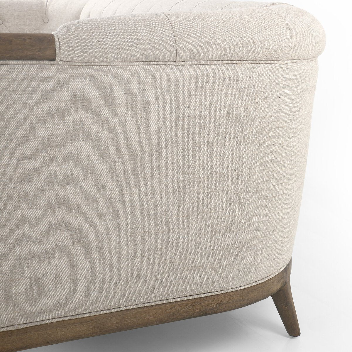 Overall Dimensions 91.00"w x 36.00"d x 29.75"hItem Number 224510-004Colors Alcala Wheat, Distressed NaturalMaterials 70% Polyester, 20% Viscose (Rayon), 10% Flax/Linen, Solid ParawoodFabric PerformanceWeight 132.28 lbVolume 62.26 cu ftArm Height from Floor 27.75"Arm Height from Seat 9.00"Arm Length 27.00"Arm Width 4.75"Clearance from Floor 1 5.25"Distance between Legs (Front to Back) 1 27.50"Distance between Legs (Side to Side) 1 86.50"Seat Back Height 12.00"Seat Cushion Depth 1 24.50"Seat Cushion Thickness 1 8.50"Seat Cushion Width 1 43.00"Seat Depth 1 25.00"Seat Height 1 18.75"Seat Width (Back) 74.00"Seat Width (Front) 85.00"Seat Width 1 79.00"Back Cushion Attachment FixedBack Cushion Detail ButtonedBack Cushion Qty 1.00Chair Arm Option With ArmCleaning Code