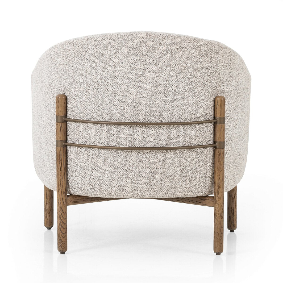 Overall Dimensions 33.00"w x 31.50"d x 32.00"hItem Number 108626-001Colors Astor Stone, Distressed Natural, Aged BronzeMaterials 91% Polyester, 9% Cotton, Solid Oak, IronFabric PerformanceWeight 41.89 lbVolume 22.46 cu ftArm Height from Floor 25.00"Arm Height from Seat 7.50"Arm Length 19.00"Arm Width 3.50"Clearance from Floor 1 7.50"Distance between Legs (Front to Back) 1 18.75"Distance between Legs (Side to Side) 1 26.50"Seat Back Height 17.25"Seat Depth 1 21.50"Seat Height 1 17.50"Seat Width (Back) 14.00"Seat Width (Front) 26.00"Back Cushion Attachment FixedBack Cushion Qty 1.00Chair Arm Option With ArmCleaning Code