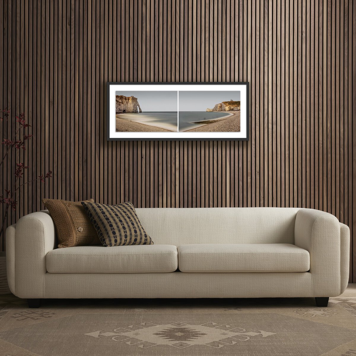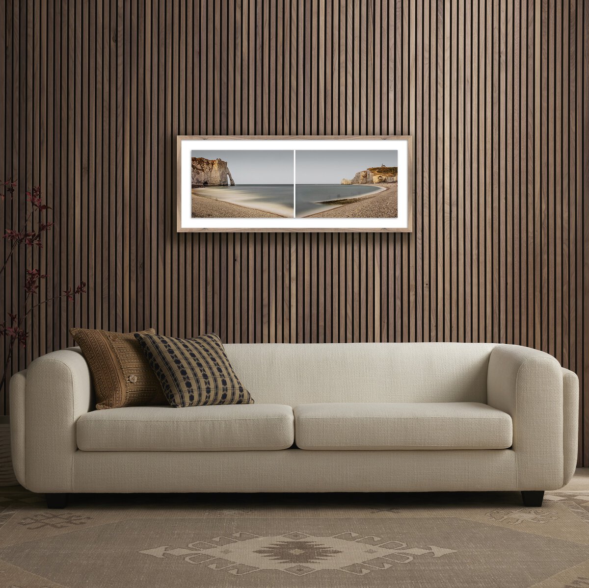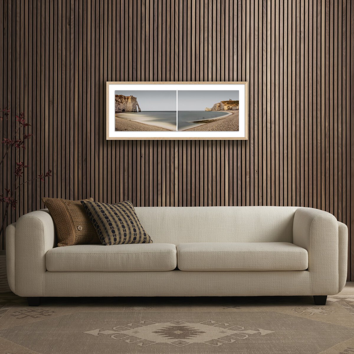 Overall Dimensions 32.00"w x 1.50"d x 14.00"hItem Number 245725-007Colors White 1.5 Maple, Vibrance Matte Paper, Clear Acrylic GlazingMaterials American Maple, Matte Paper, Acrylic GlazingWeight 20.00 lbVolume 1.41 cu ftArtist Guy SargentMain Color MixedOrientation HorizontalPresentation Style Framed PaperSize MediumSubject Landscapes & SeascapesSuite Etretat
