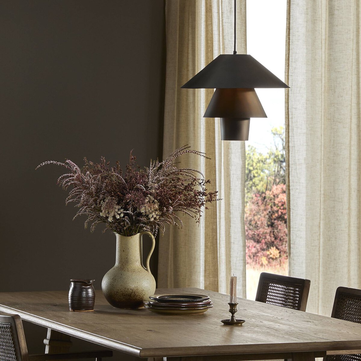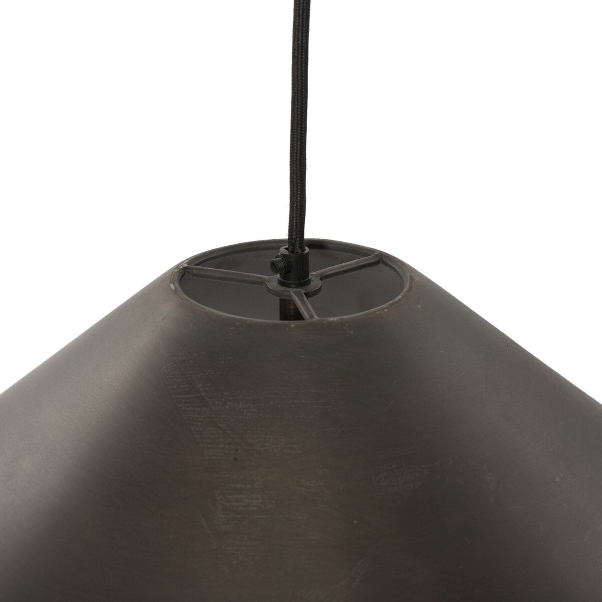 Overall Dimensions 16.25"w x 16.25"d x 12.75"hItem Number 246866-001Colors Dusty Iron, Black Fabric CordMaterials Iron, ThermoplasticWeight 6.17 lbVolume 4.73 cu ftCord Length 96.00"Mounting Plate Diameter 5.00"Mounting Plate Height 1.00"Pendant Body Diameter 16.25"Pendant Body Height 12.75"Bathroom Safe YesBulb Type LEDBulb(s) Included YesCan Hang On Sloped Ceiling YesCord Type SPT-2Environmental Rating Damp RatedMax Wattage 9.00Plug Type HardwiredShade Shape OtherShape Type RoundSocket Qty 1.00Socket Type E26: SOCKETSocket Type TYPE ASuite EzioSwitch Type HARDWIRED (NO SWITCH)Visible Bulb Yes