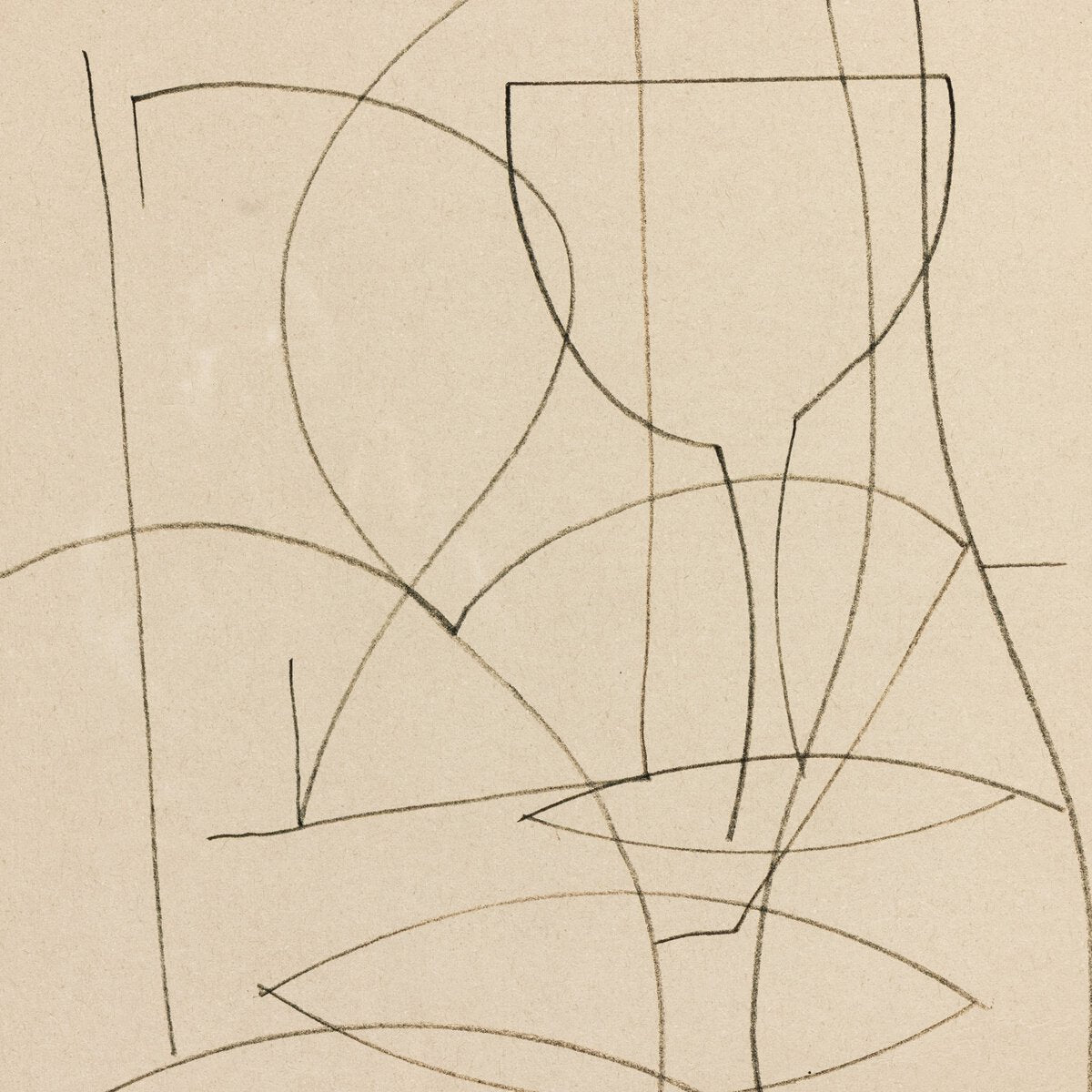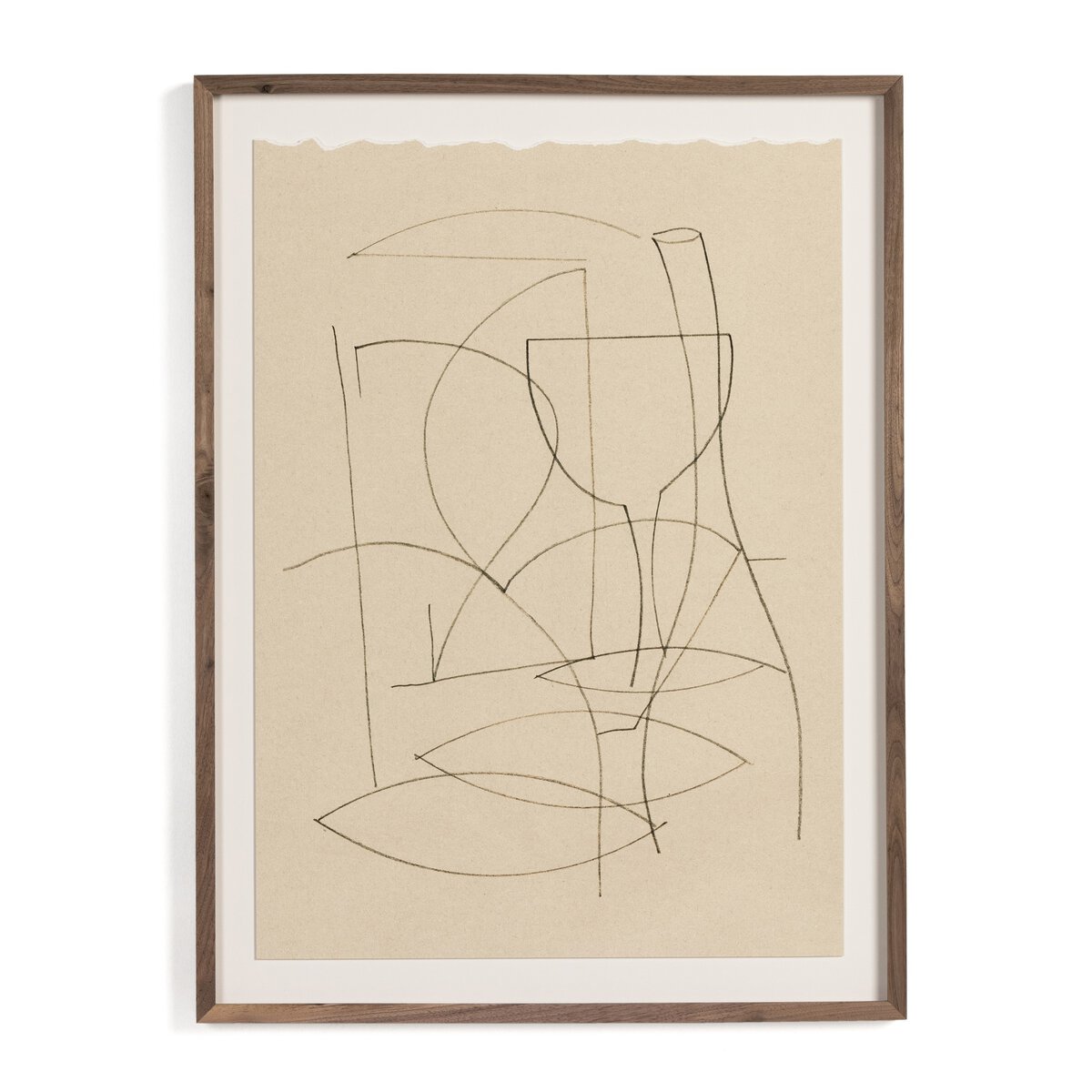 Artist Dan Hobday's fondness for modern minimalism showcased in line drawings inspired by still life. If not currently in stock, this piece ships within three weeks. Handmade in Austin, Texas.