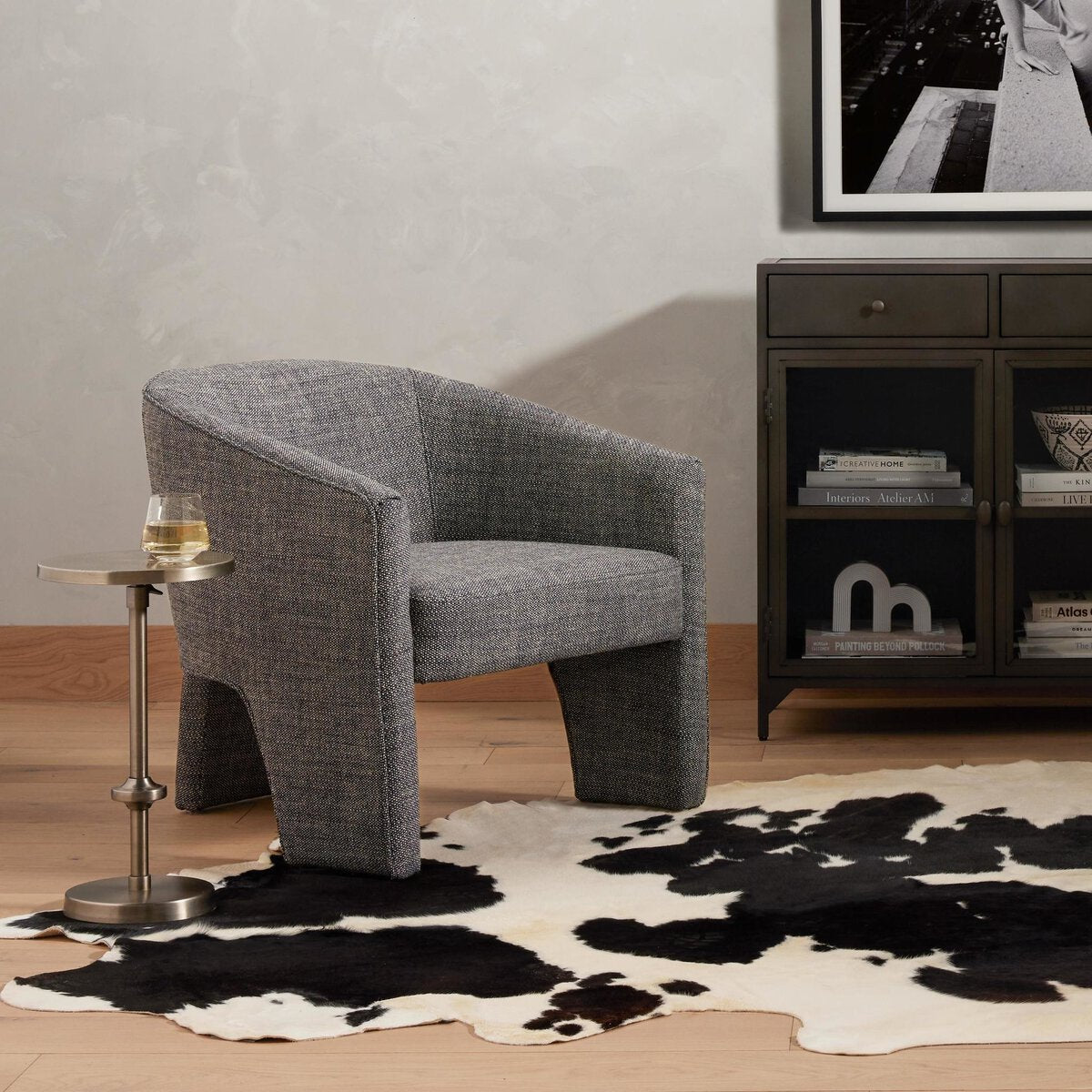 Overall Dimensions 30.50"w x 30.50"d x 29.50"hItem Number 109385-002Colors Bellamy StormMaterials 93% Polyester, 7% Viscose (Rayon)Weight 46.30 lbVolume 18.89 cu ftArm Height from Floor 23.50"Arm Height from Seat 6.00"Arm Length 28.50"Arm Width 4.00"Clearance from Floor 1 11.75"Distance between Legs (Front to Back) 1 19.00"Distance between Legs (Side to Side) 1 24.00"Seat Back Height 12.00"Seat Depth 1 21.25"Seat Height 1 17.50"Seat Width (Back) 17.00"Seat Width (Front) 23.50"Back Cushion Attachment FixedBack Cushion Detail WeltedBack Cushion Qty 1.00Chair Arm Option With ArmCleaning Code