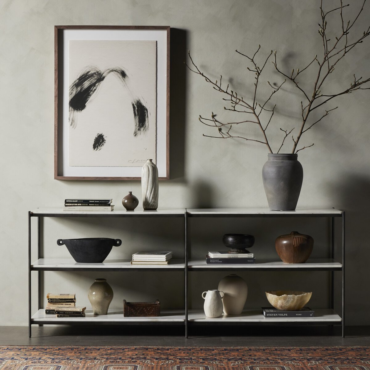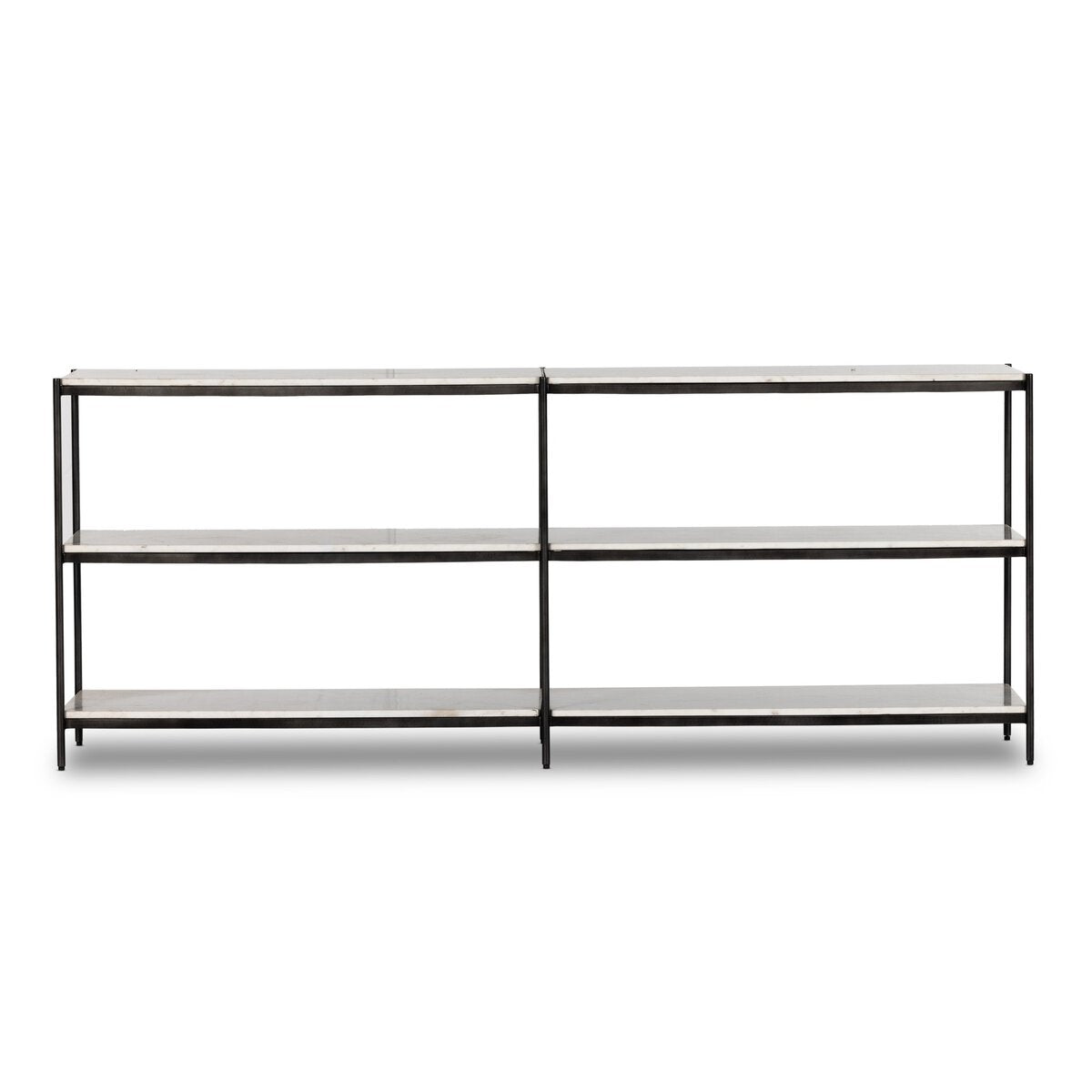 Overall Dimensions 78.00"w x 20.00"d x 31.00"hItem Number 235641-001Colors Antique Brass, Polished White MarbleMaterials Iron, Solid MarbleWeight 343.17 lbVolume 49.76 cu ft