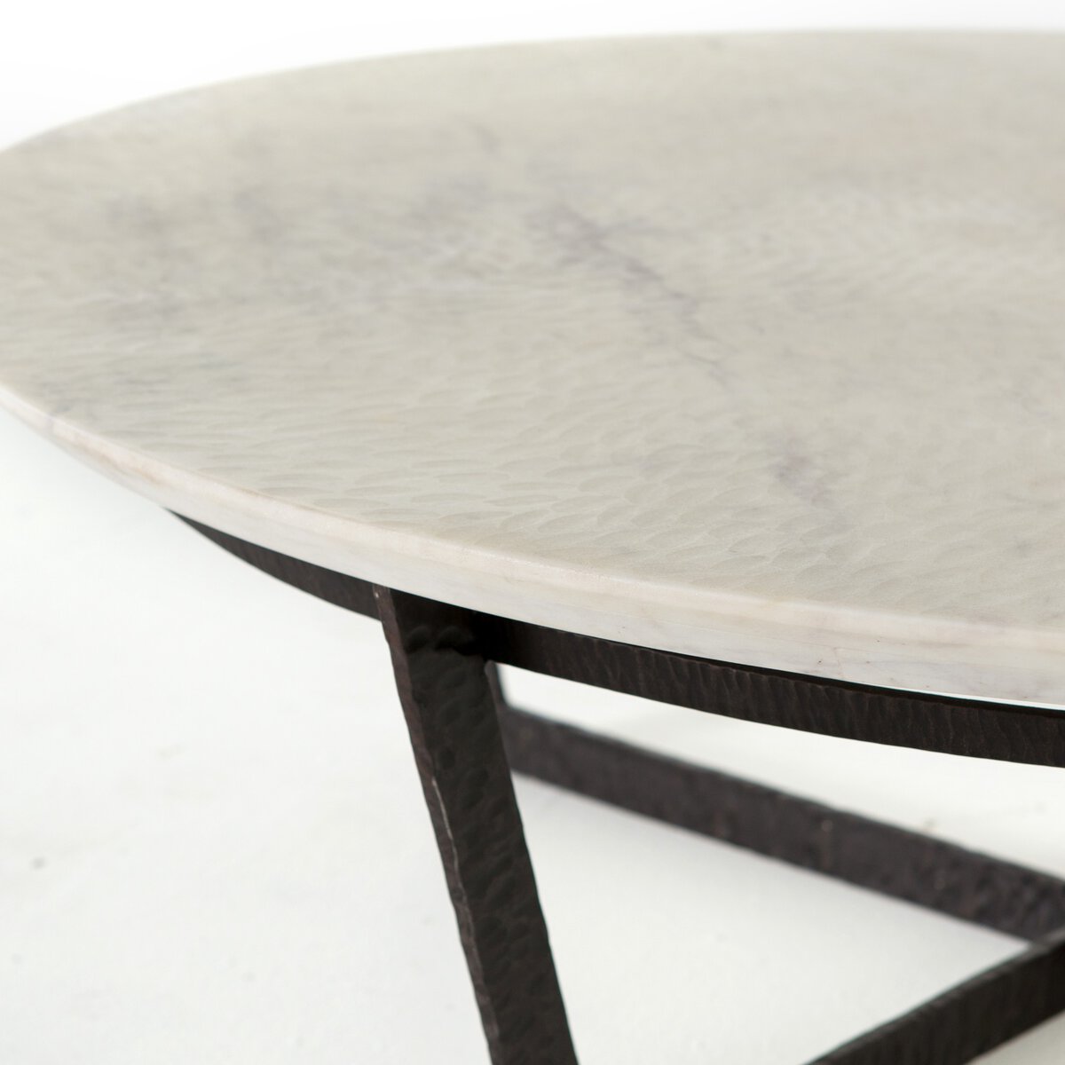 Overall Dimensions 48.00"w x 48.00"d x 15.00"hItem Number ISD-0199Colors Sandblasted White Marble, Rustic FossilMaterials Solid Marble, IronWeight 189.60 lbVolume 34.01 cu ftClearance from Floor 1 12.00"Leg/Base Depth 1 45.25"Leg/Base Height 1 13.50"Leg/Base Width 1 45.25"Overhang Width 1 6.50"Tabletop Thickness 1.50"Drawer Glide Type NoneDrawer Stop Material NoneFunctionality NoneShape Type RoundSuite FelixWeight Capacity 100 lb