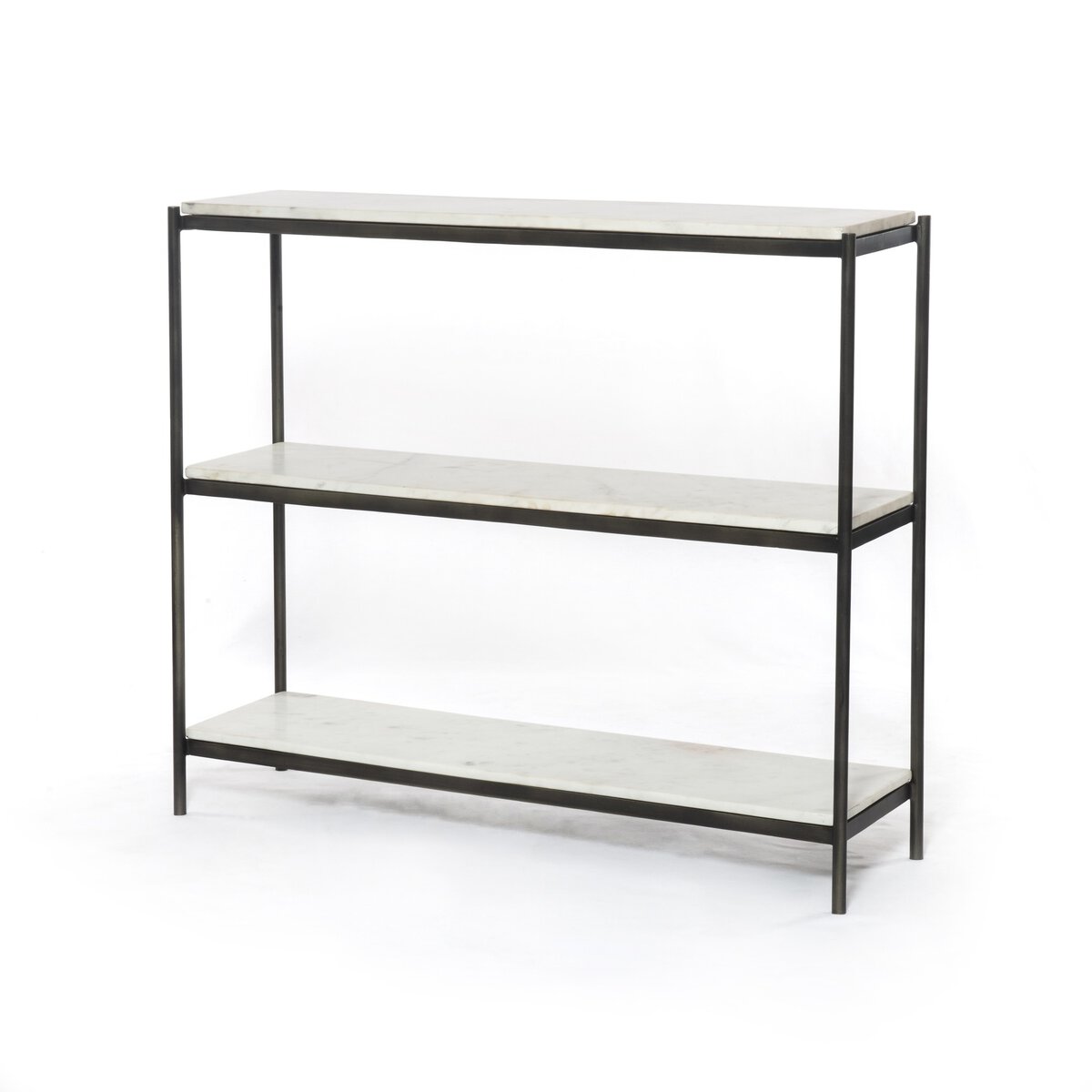 Overall Dimensions 36.00"w x 10.00"d x 31.00"hItem Number IMAR-248Colors Polished White Marble, Antique BrassMaterials Solid Marble, IronWeight 81.79 lbVolume 15.64 cu ftClearance from Floor 1 3.00"Distance between Legs (Front to Back) 1 35.00"Distance between Legs (Side to Side) 1 9.00"Fixed Shelf Depth 1 9.00"Fixed Shelf Depth 2 9.00"Fixed Shelf Height 1 0.50"Fixed Shelf Height 2 0.50"Fixed Shelf Width 1 35.00"Fixed Shelf Width 2 35.00"Interior Section Depth 1 9.00"Interior Section Depth 2 9.00"Interior Section Height 1 12.88"Interior Section Height 2 12.88"Interior Section Width 1 35.00"Interior Section Width 2 35.00"Leg/Base Depth 1 10.00"Leg/Base Height 1 31.00"Leg/Base Width 1 35.00"Tabletop Thickness 0.50"Door Type No DoorsDrawer Glide Type NoneDrawer Stop Material NoneFixed Shelf Qty 2.00Fixed Shelves YesFunctionality ShelvesInterior Section Quantity 2.00Shape Type RectangleSuite FelixWeight Capacity 100 lb